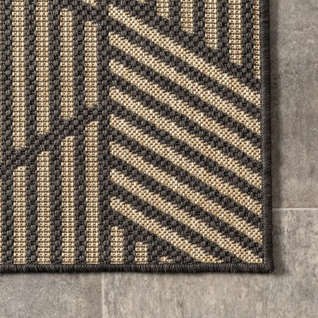 Nuloom Leona Geometric 4X6 Indoor/outdoor Area Rug For Living Room Patio Deck Front Porch Kitchen, Charcoal/ivory
