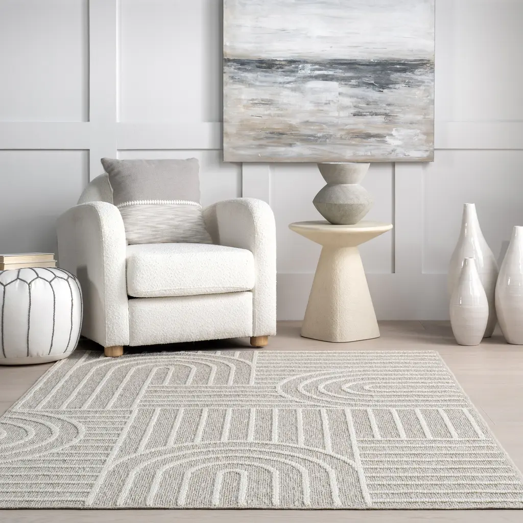 Elevate your space with our meticulously crafted rug, meticulously designed to radiate the charm of a handmade creation, infusing character into any room. This is more than just a rug; it's a testament to both comfort and endurance. The high-low loop details in the design yield a captivating texture, while the crisp, geometric pattern introduces a hint of contemporary sophistication. When the inevitable "oops" happens, simply roll up your rug and toss in the washing machine! Effortlessly transform your space with this outstanding rug, seamlessly harmonizing artistry and functionality. 100% Polyester, made in TurkeySpill- and stain-resistant, this reversible rug is perfect for those with kids and pets! Its durable machine woven weave will hold up in high traffic areas of your home such as your bedroom, living room, dining room, office, playroom, or hallwayMade from sustainably-sourced premium synthetic fibers with a .25" thickness that allows for convenient placement in entrways or under furnitureTo clean, machine wash with cold water using a standard-sized machine (do not use bleach). We recommend line drying or drying without heat on an air-only dryer cycle. A low heat iron can be used if neededWe recommend using a rug pad to provide extra cushioning and to prevent any possible slipping and sliding on your flooring. Rug pads serve as protective layering piece for your floor and your rug from any wear and tear, extending the life of your rug