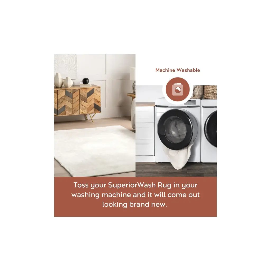 Introducing the SuperiorWash Cozy Plush Collection, designed with home's comforts and practicality in mind. This rug combines luxurious softness with robust durability, making this the ideal choice for households with kids and pets. With its machine washable capability, spills and everyday messes are easily managed- just toss your rug in the washing machine, and it comes out looking fresh and clean. This easy-care design ensures that your home remains a clean and cozy haven without the hassle of complex maintenance routines. Crafted from high-quality synthetic materials, this rug boasts a plush pile height that offers an irresistibly soft texture underfoot. Whether it's for children playing or pets lounging, this rug creates a warm and inviting surface that enhances the comfort of any room. The durable construction ensures that it can withstand daily wear and tear, maintaining its softness. It's machine washable and stain-resistant features, combined with a non-slip backing, make it an ideal choice for any home. This ensures that your rug stays securely in place, creating a hassle-free environment in high-traffic areas. It is also OEKO-TEX certified, so you can enjoy the peace of mind that comes with knowing you've chosen a product that supports a healthier living environment. Whether you're looking to add a pop of color with a living room rug, a touch of warmth to your bedroom, or a hall rug to enhance your hallway's look, our collection has you covered. With its combination of softness, durability, and thoughtful design, our Cozy Plush Collection is more than just an accessory�it's a functional and stylish addition to any home.Superior Luxury Washable: The Cozy Plush Collection combines the cozy, plush feel of a shag rug with the practicality of being machine washable. This collection showcases modern designs with a range of solid colors and subtle geometric patterns.Machine Washable for Easy Care: Maintaining this rug is a breeze with regular vacuuming and spot cleaning to preserve its beauty. For tougher stains, just toss your rug in the washing machine on a gentle cycle with cold water.Designed for Every Room: This area rug is kid and pet-friendly, making it ideal for high-traffic areas of your home. It ensures lasting style in your living room, bedroom, bathroom, home office, dorm room, or hallway.Ultra Soft Pile Height: The high pile of this rug strikes a perfect balance between style and the ultimate cozy feeling underfoot. Our rug is extremely soft to the touch while being easy to maintain in your living room or bedroom.Stain-Resistant Material: Our machine washable rugs are crafted from synthetic materials that are stain-resistant, lightweight, and easy to clean. This area rug is also OEKO-TEX certified, giving you peace of mind while creating a stylish space.Durable Design with Non-Slip Backing: This rug's power-loomed design is made to endure everyday wear and tear, ensuring long-lasting durability. The integrated non-slip backing keeps the rug securely in place, offering a hassle-free solution.