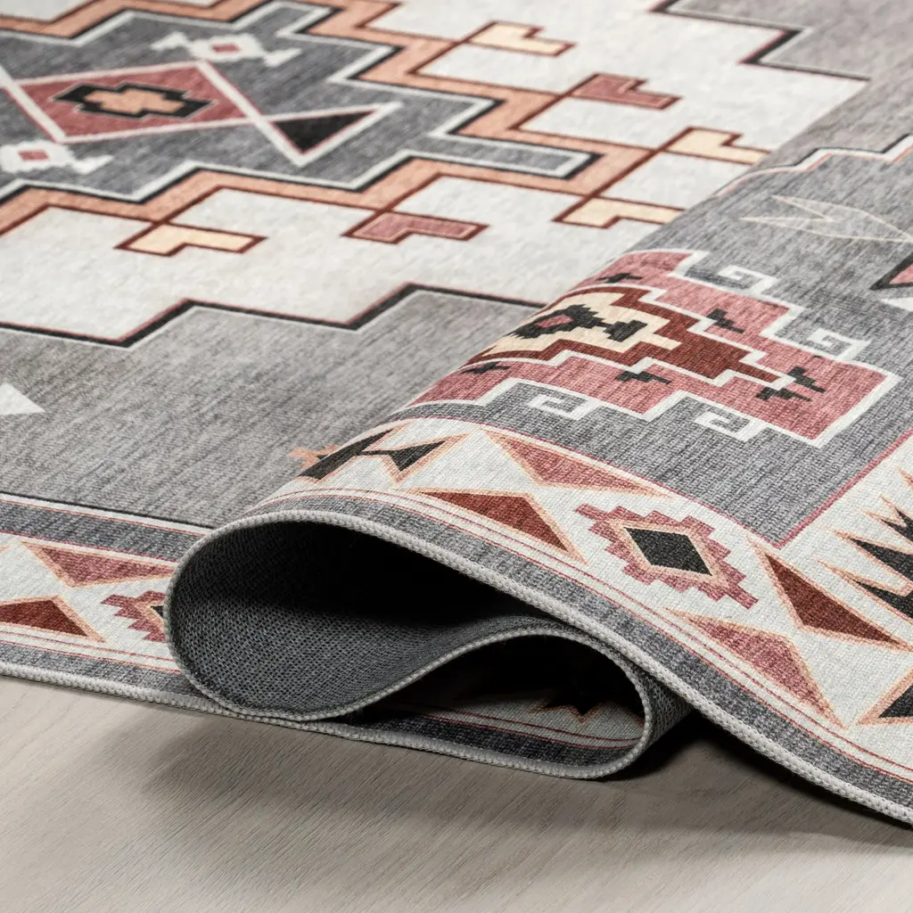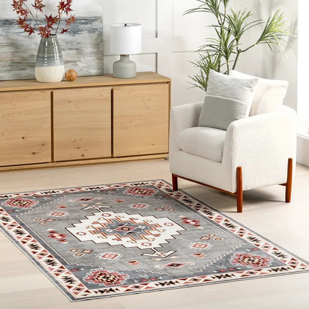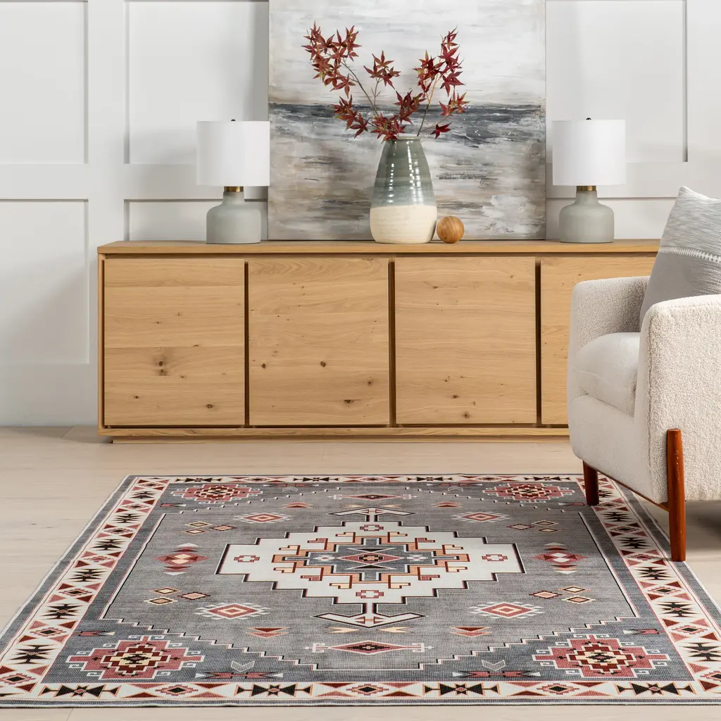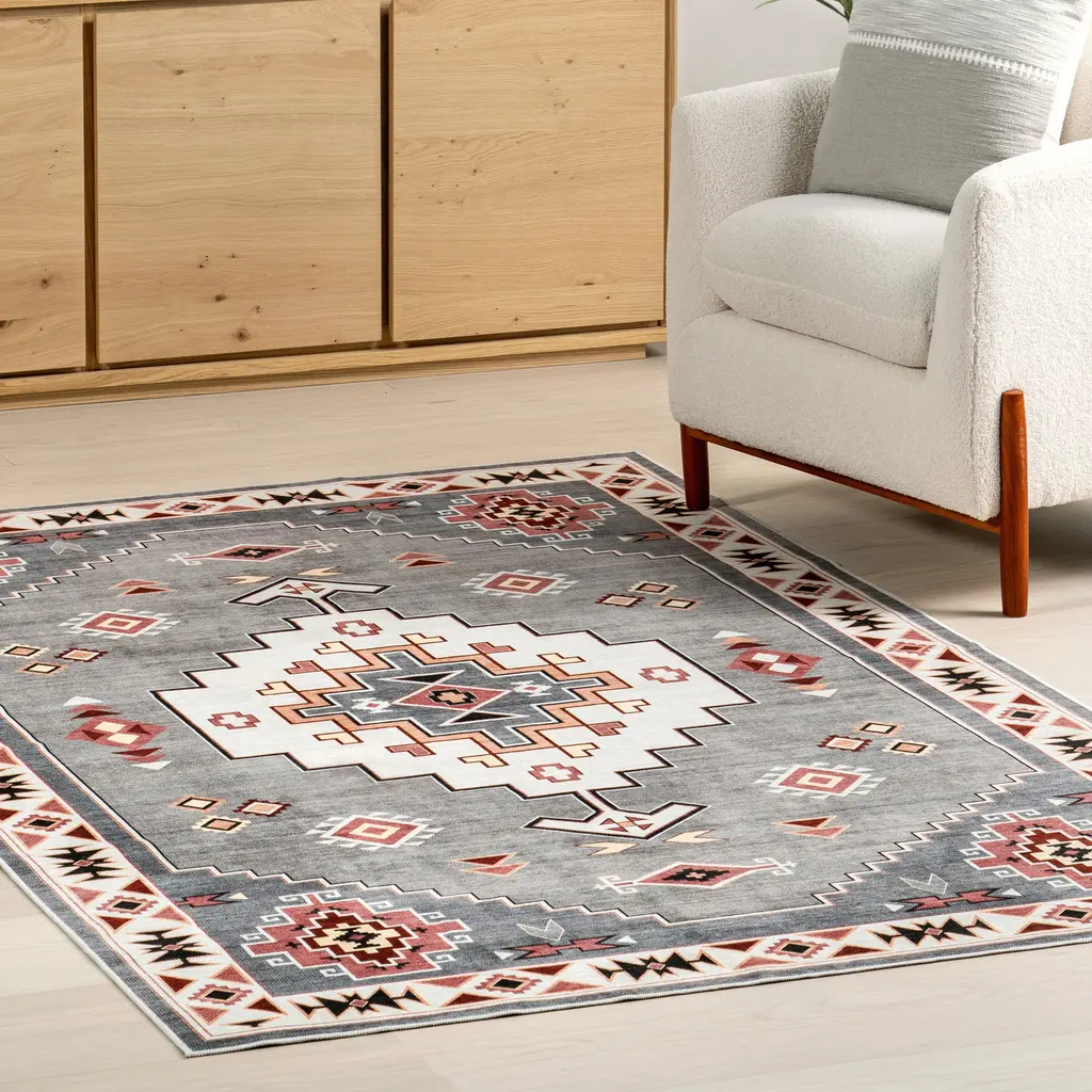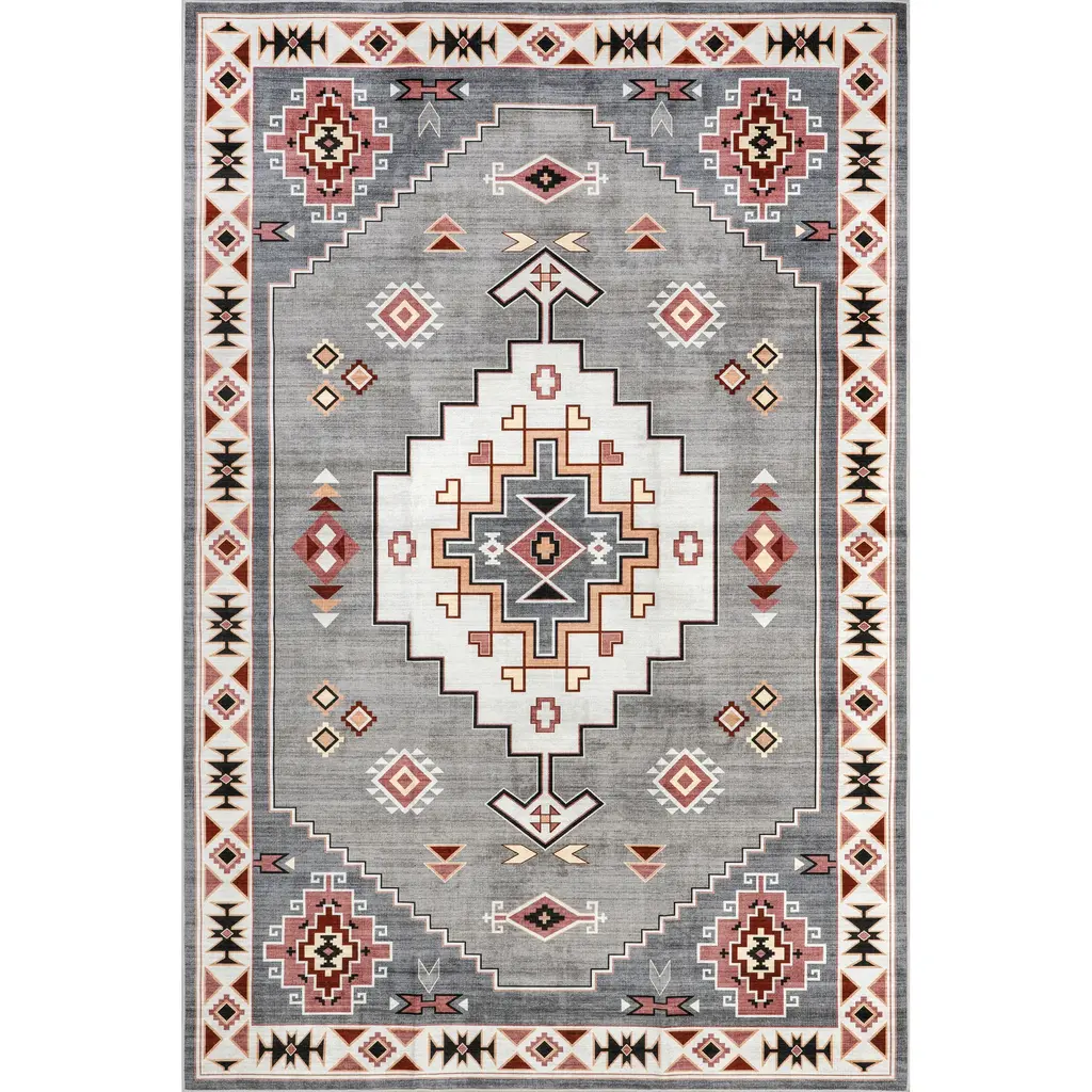 Nuloom Lynx Southwestern Spill Proof Machine Washable Area Rug, Grey 8'x10'