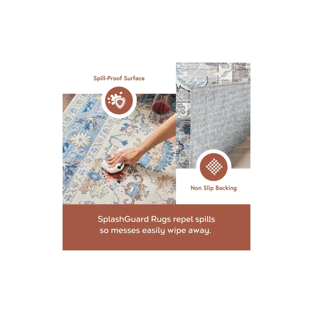 A rug you can't help but stop and stare! Perfect for a living room, playroom, bedroom, or any area needing a pop of color, this machine washable area rug features a fun and eye-catching design that will transform your space. Made from sustainably-sourced premium synthetic fibers, our machine-washable rugs are perfect for those with kids and pets. When that inevitable stain happens, roll your rug up and place it in your washing machine! Hang dry and simply put your rug right back in the desired place.100% Polyester, made in ChinaSpill- and stain-resistant, this washable rug is perfect for those with kids and pets! Its durable machine woven weave will hold up in high traffic areas of your home such as your bedroom, living room, dining room, office, playroom, or hallwayDesigned using perfromance fabric and surface coating to repel water and stains, liquid beads up instead of being absorbed and can be wiped away with a cloth.To clean, machine wash with cold water using a standard-sized machine (do not use bleach). We recommend line drying or drying without heat on an air-only dryer cycle. A low heat iron can be used if neededWe recommend using a rug pad to provide extra cushioning and to prevent any possible slipping and sliding on your flooring. Rug pads serve as protective layering piece for your floor and your rug from any wear and tear, extending the life of your rug.