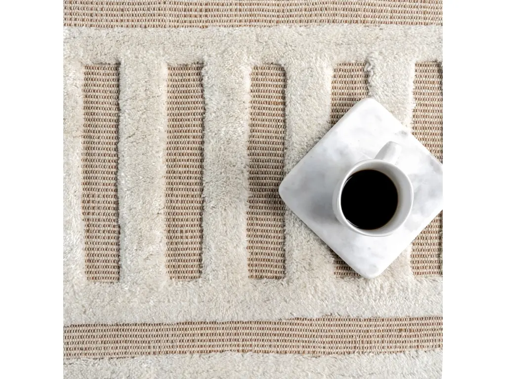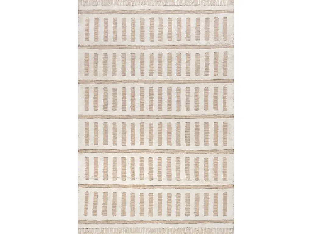 Add dimension to a space in an easy, approachable way with the Merrick Tasseled Cotton and Wool Rug. With its high-low pile, textural details, and tasseled ends, this rug delivers. Bound to ground any room in beauty, this seemingly subtle rug is anything but.