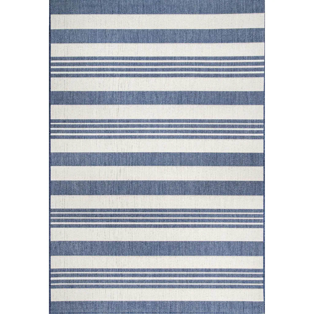 This striped area rug will be the finishing touch you've been looking! This floor covering can elevate your dining room or create a comforting environment on your patio. Made from durable synthetic fibers, this rug is built to last for years to come. Pair with nautical decor for a coastal feel, or farmhouse pieces for a rustic vibe. Kick back and relax with our pet-friendly and easy to care for area rugs.100% Polypropylene, made in BelgiumDesigned with resilience against everyday wear-and-tear, this rug is kid and pet friendly and perfect for high traffic areas both indoors and outdoors such as patio, living room, kitchen, and hallwaysSleek and functional .04" pile height allows for convenient placement in entryways, underneath furniture, and will not obstruct doorwaysWater resistant and easy to clean, this rug can be hosed down outside and spot treated for any mild stains using rug cleanerWe recommend using a rug pad to provide extra cushioning and to prevent any possible slipping and sliding on your flooring. Rug pads serve as protective layering piece for your floor and your rug from any wear and tear, extending the life of your rug