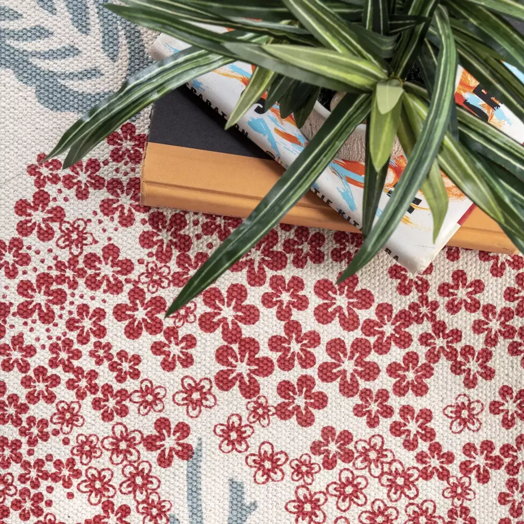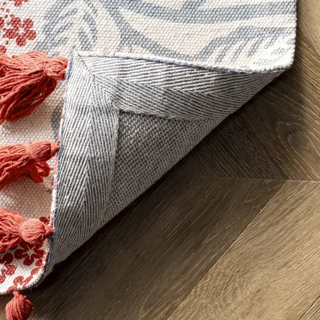 This hand made, lightweight, 100% cotton area rug is perfect addition to coastal decor. Brighten up your space with this fun pattern and exciting color palette.