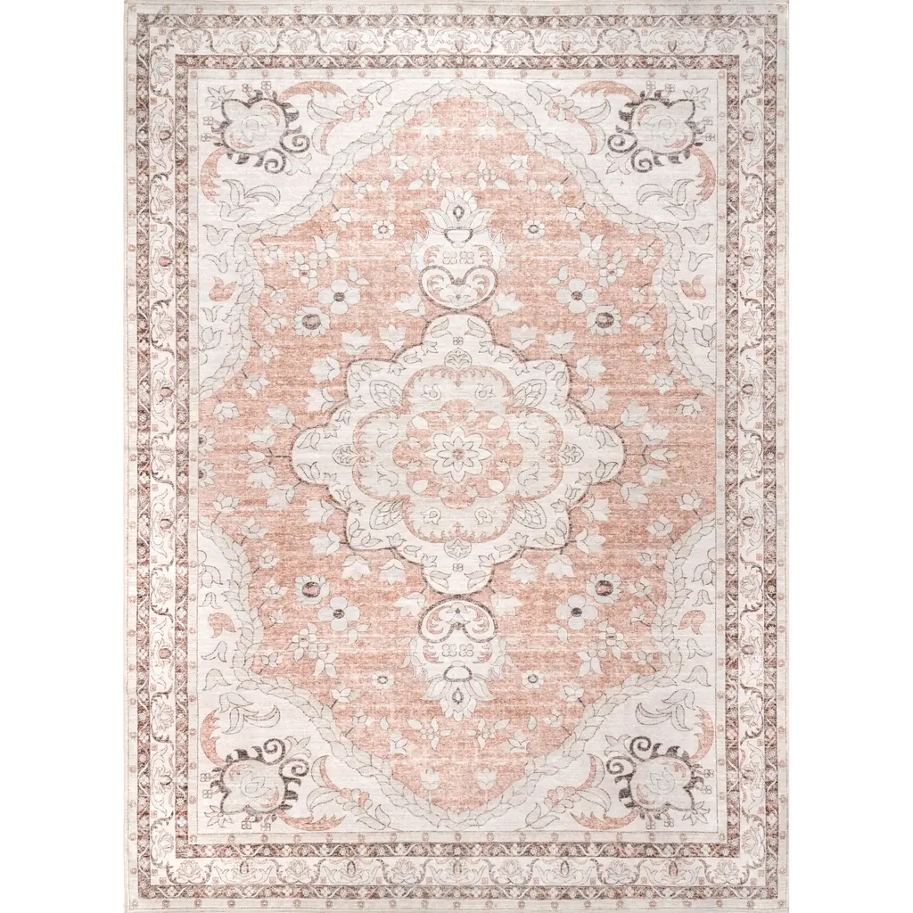 Nuloom Tracie Washable Floral Medallion Rug, Peach 6' Round