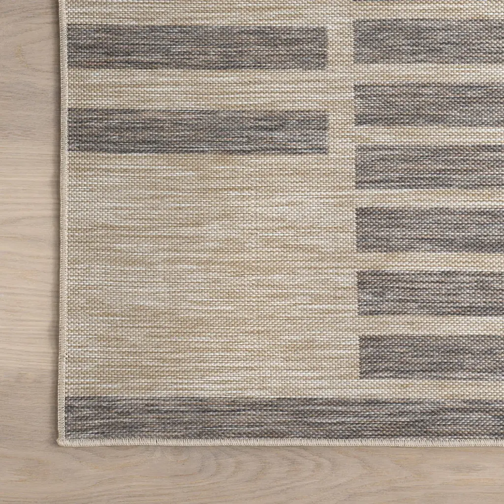 Introducing our modern geometric area rug, crafted to seamlessly blend style with functionality. Whether indoors or outdoors, its non-slip backing ensures stability while its highly durable construction withstands heavy foot traffic. Kid-friendly and pet-friendly, this rug boasts stain resistance, making it perfect for any space, from the bedroom to the patio. Machine-made with 100% polypropylene, it offers both comfort and longevity, ideal for regular outdoor use. Elevate your living space with this versatile and chic addition, designed to enhance any room with its sleek design and enduring quality.100% Polypropylene, made in TurkeyCombining functionality with style, this versatile area rug is ideal for various areas of your home, including the bedroom, living room, dining room, hallway, kitchen, patio, or outdoor spaces. It infuses warmth and charm into any corner of your living space.A rug boasting a pile height of 0.20 inches provides both comfort and durability, simplifying maintenance and cleaning while offering a cozy surface to walk on.Shake out to remove light dirt and dust. Spray with hose for stubborn dirt and dust. Spot clean any stains with cloth and solution. Optional: sweep/ vacuum without beater bar at lowest setting.We recommend using a rug pad to provide extra cushioning and to prevent any possible slipping and sliding on your flooring. Rug pads serve as protective layering piece for your floor and your rug from any wear and tear, extending the life of your rug