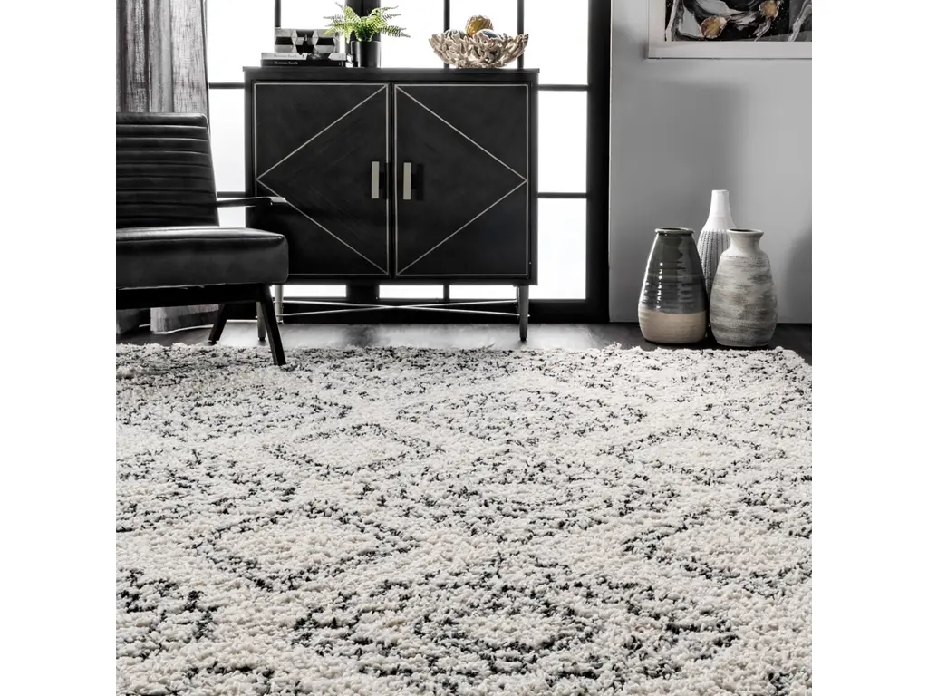 Looking for a piece that will elevate your space? This Moroccan shag area rug is the perfect addition to any room. Not only is this rug incredibly soft underfoot but has an eye-catching geometric pattern with braided tassels lining the end. This unique floor covering is sure to impress your guests as well as blend seamlessly with any décor from bohemian to modern. Create the home you’ve always dreamed of with our pet-friendly and easy to care for area rugs.