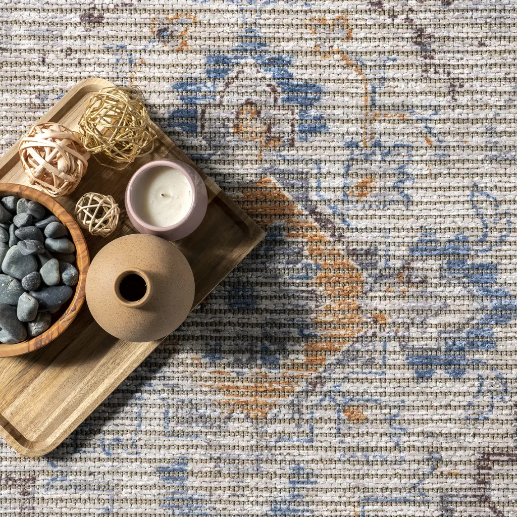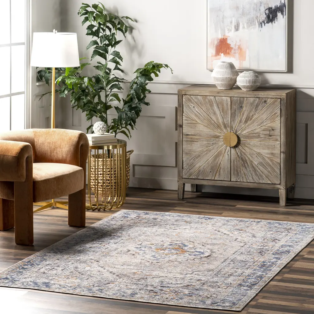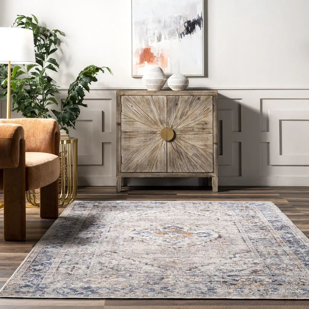 Nuloom Vintage Medallion Washable Rug, Light Grey 5' 3" X 8'