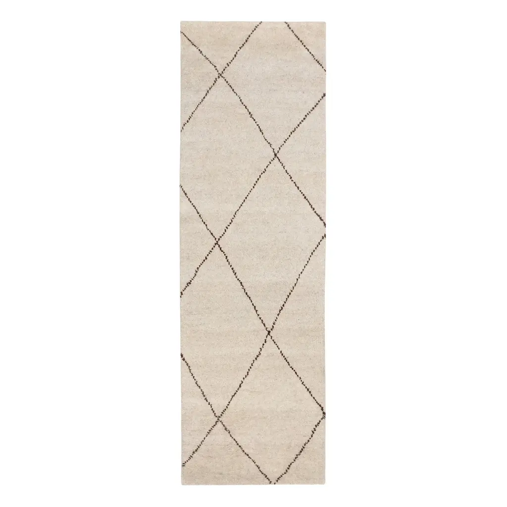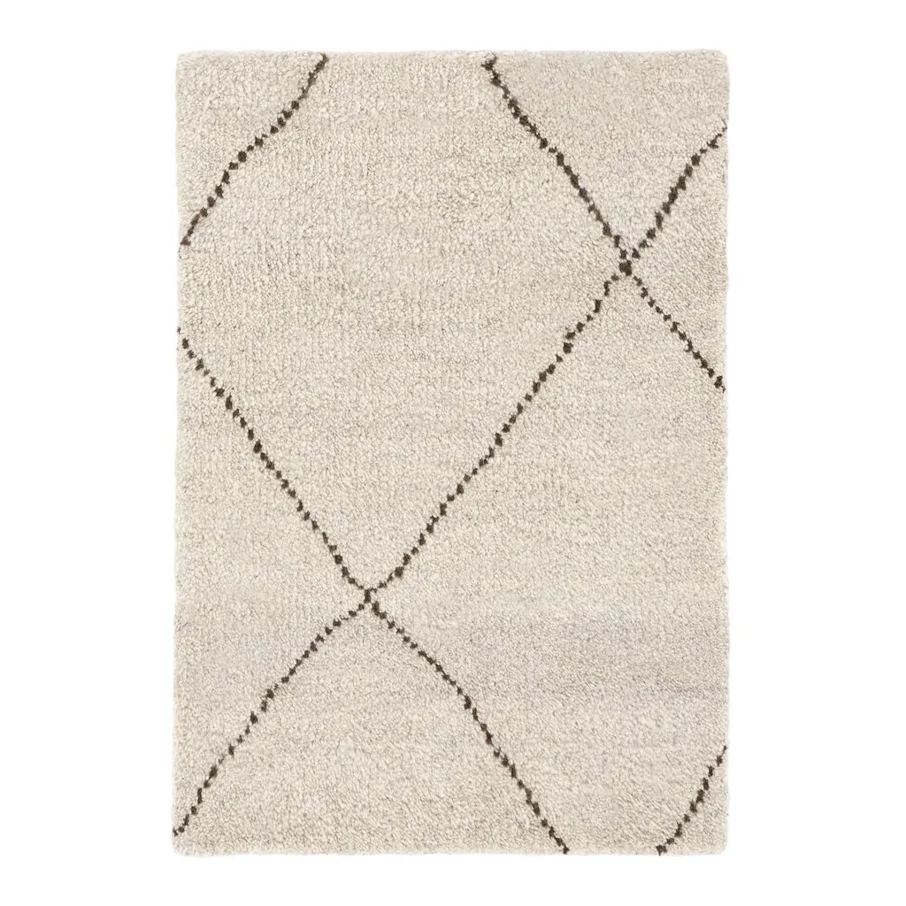 Large-scale diamonds, stark and black, quiver across the soft Ivory ground of this divine wool rug as if hand-drawn. With a sophisticated, subtle geometry that is densely hand knotted and shorn to lush, plush perfection, this rug exudes maximum comfort and understated modern style.