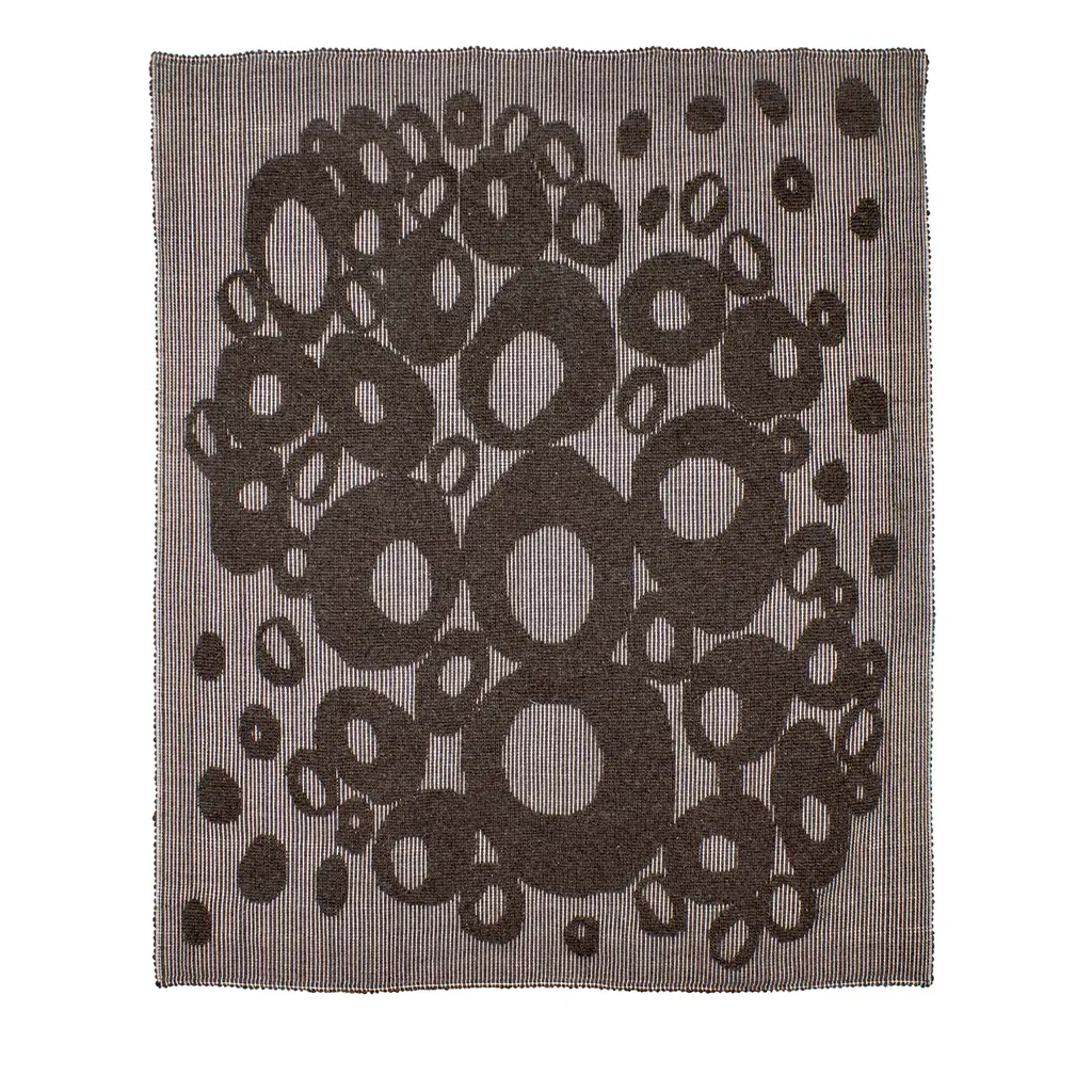 Designer Carlo Sanna drew inspiration from the Sardinian nuragic archeological site of Barumini Su Nuraxi for the design of this rug. Carefully handwoven following the ancient "pipiones" technique - the Sardinian word for grapes - the motif replicating a birds-eye view of the site by using beige stitching on a background in a warm hazelnut hue.