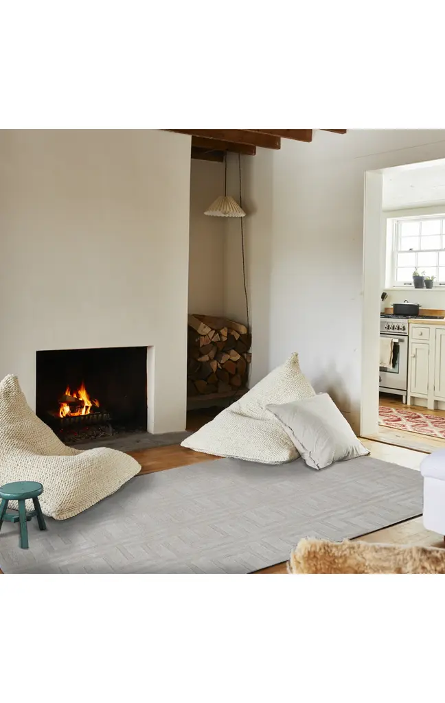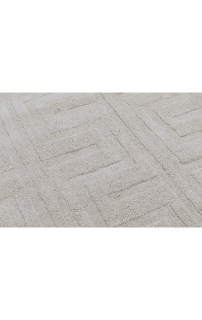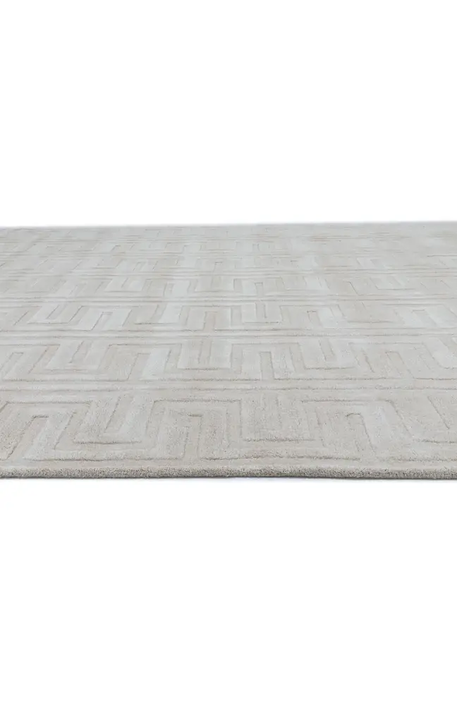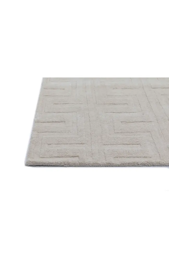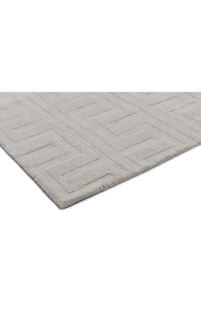 Sculpted in a pattern that updates the classic Greek Key, this hand-tufted rug's natural wool surface feels extra-soft underfoot. Traditionally, the interlocking squares symbolize unity and eternity. Our modern interpretation of an ancient motif, this rug will always stay in style.Features:Natural, Renewable,Fire Retardant, Biodegradable, Durable and Easy CareHand TuftedBacking included