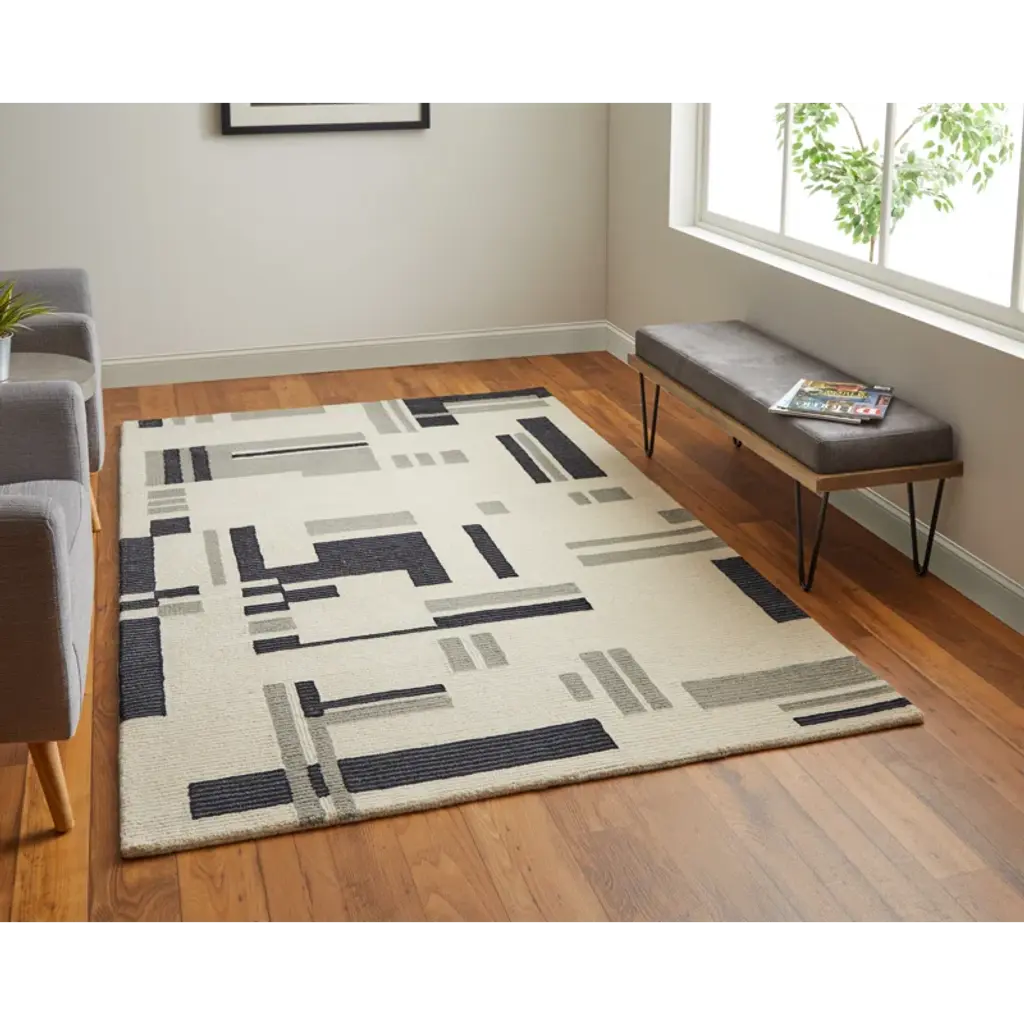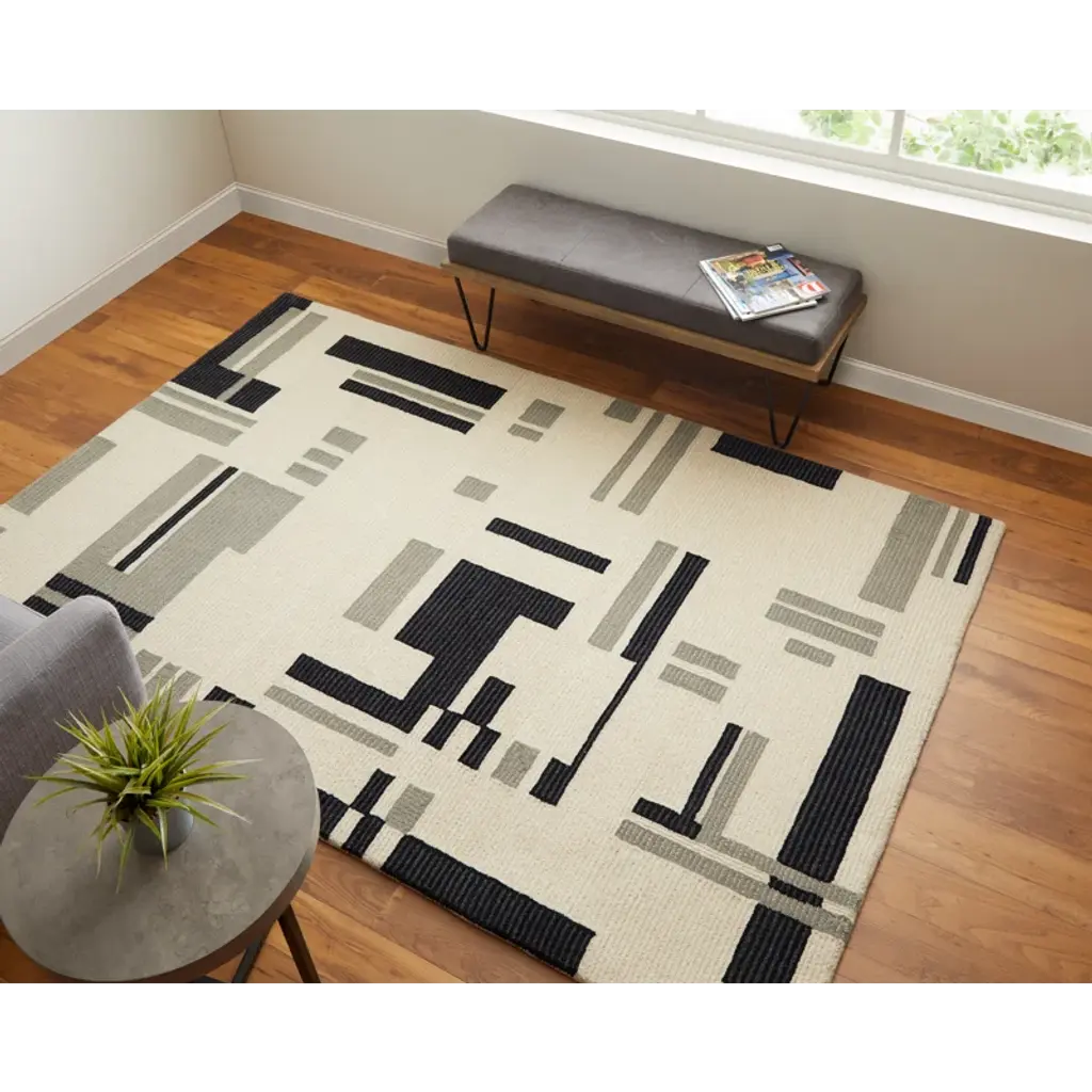 Nya Architectural Mid-Century Modern, Ivory / Black, 5' X 8' Area Rug
