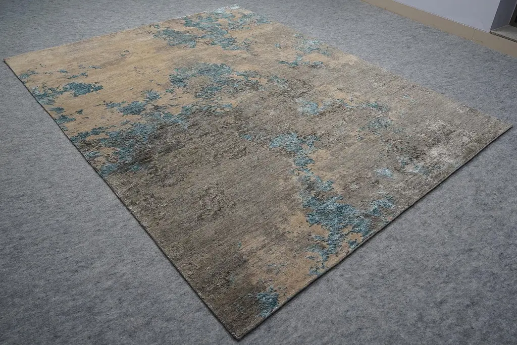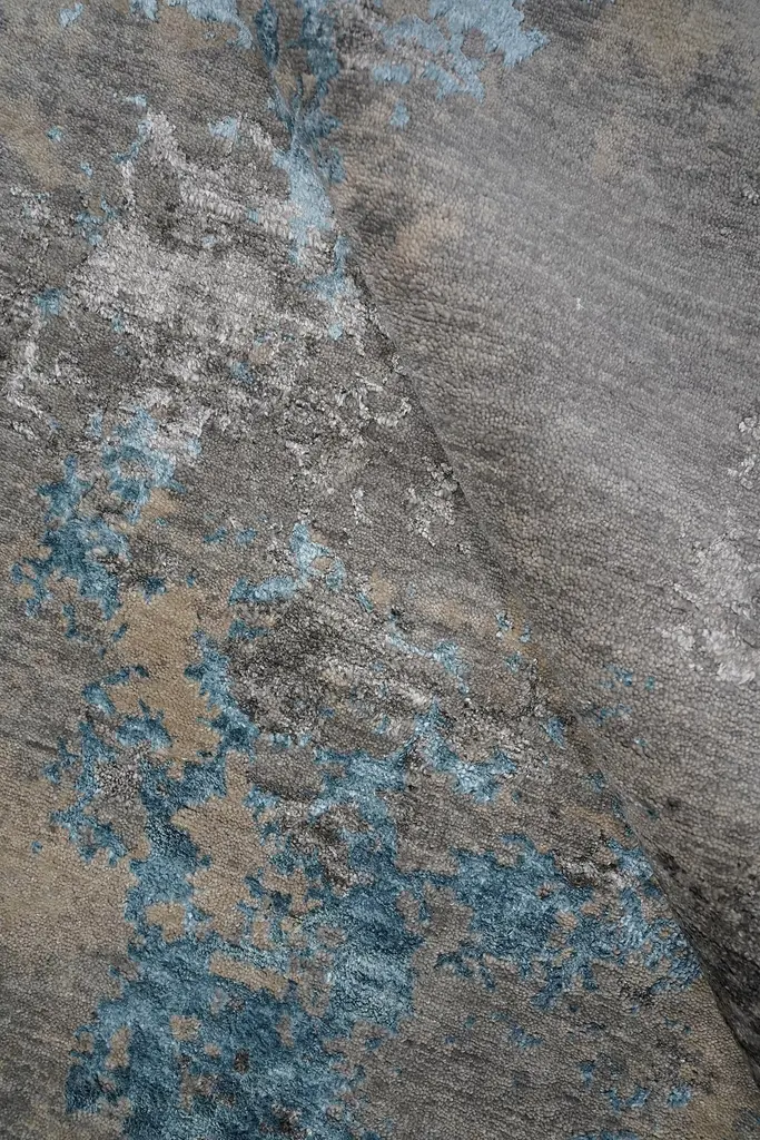 Nyxia Hand Knotted Modern Silk Rug In Beige Blue And Grey Peach Colours By Hands