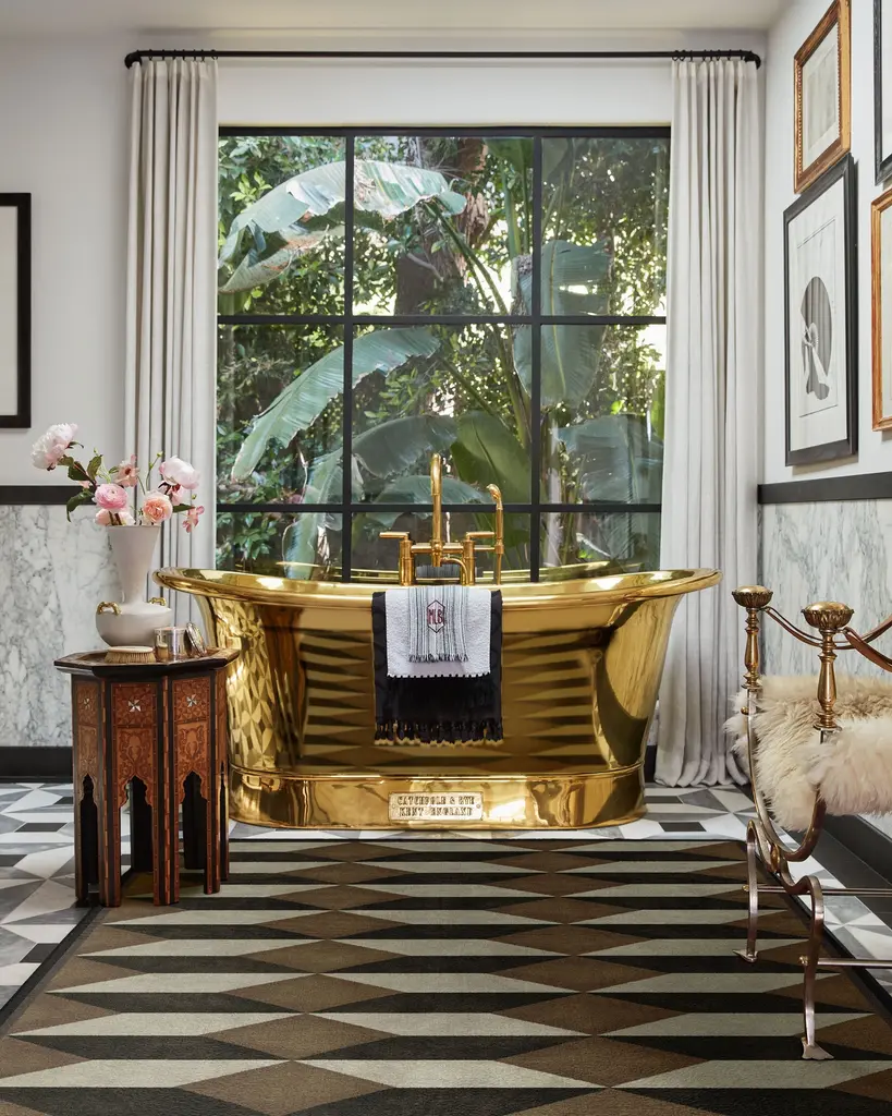 Bring home celebrity style made for you with our Martyn Lawrence Bullard Oak Black & Camel Rug. Reminiscent of Italian architect Gio Ponti's iconic tile designs, this symmetrical design features a captivating pattern of trapezoids that shift from warm black to marbled cream, all set against a rustic, camel gold background. The simple yet stylish border enhances the overall optical effect, creating a striking visual centerpiece for any room. Water-resistant, stain-resistant, and machine-washable. Rug colors may vary slightly according to your device and the lighting in your space.