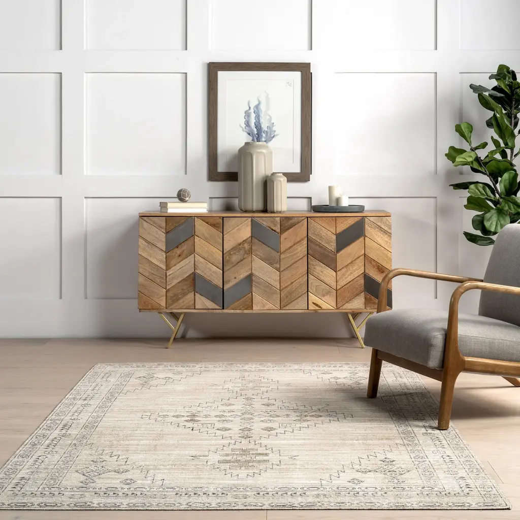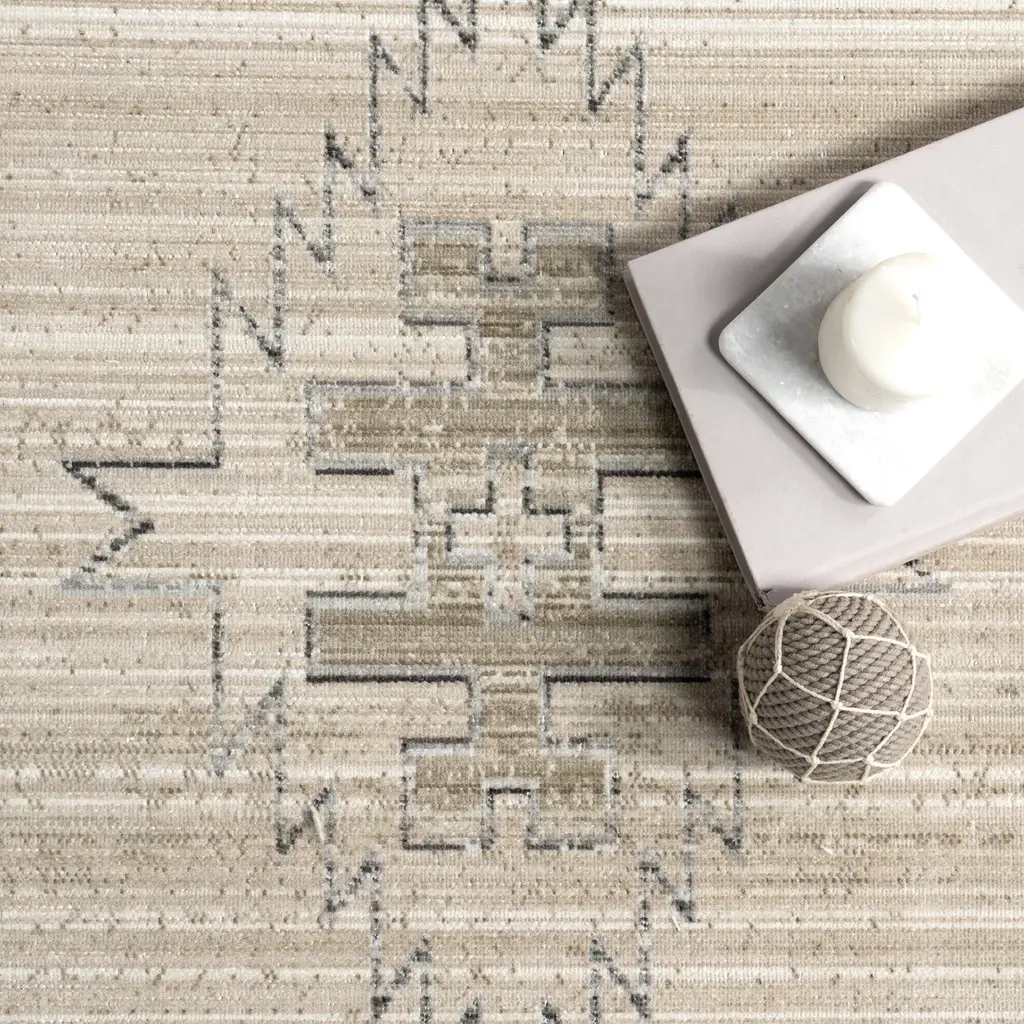 Oakley Simple Medallion Indoor/outdoor Washable Rug | Light Grey - 4' X 6'