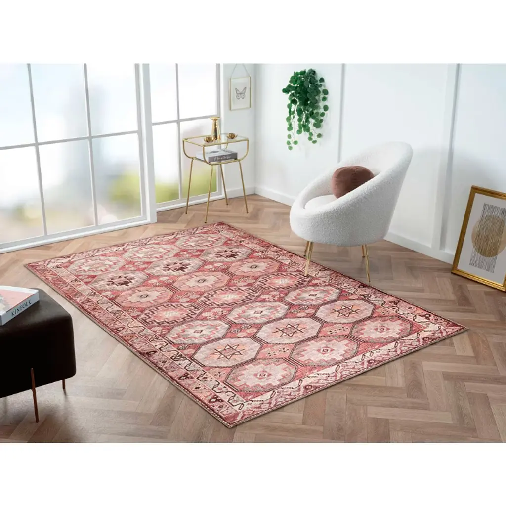 With Obeetee, trust your rug was made with easy-to-care-for materials and innovative processes that preserve quality craftsmanship and are easy to maintain. Elevate the style and comfort of your indoor space with the 100% polyester power-loomed rug from the Bergen collection. Expertly crafted with care and precision, the rug boasts a stylish Turkish tile pattern in vibrant red that brings elegance and sophistication to any room. This Obeetee machine-made area rug was crafted in Turkey using the finest materials, is durable and comfortable, and fits perfectly in high-traffic areas such as living rooms, bedrooms, hallways, and entryways. This indoor rug provides a soft and comfortable surface to step on. The non-shedding nature of the rug ensures that it will retain its beautiful, vibrant appearance for years to come without any unsightly fluff or debris. We recommend a rug pad as an added safety feature to prevent the rug from slipping and sliding, making it ideal for households with pets and children. Customize your space by choosing from this rug's various sizes, colors, and shapes. The Bergen area rug will complement any decor and bring a touch of style and functionality to any space, thanks to its quality, and long-lasting materials.