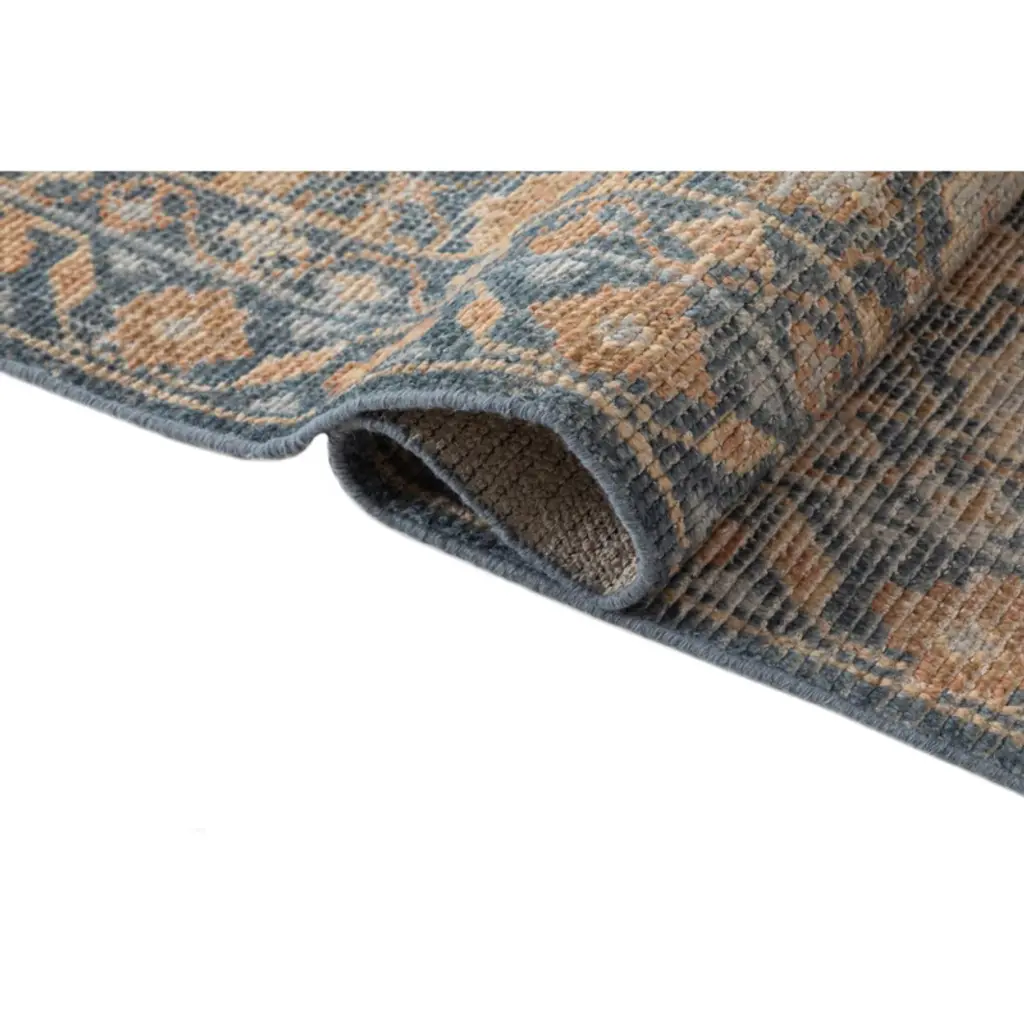 This hand-knotted wool rug features a geometric medallion pattern with intricate detailing and a subtly distressed finish, making it a perfect fit for transitional interiors. The rich blue and warm beige tones create a sophisticated, vintage-inspired aesthetic that blends effortlessly with both classic and modern spaces. Crafted from 100% wool, this rug provides a soft yet durable texture, offering warmth and comfort underfoot. The low pile construction enhances its antique appeal while ensuring easy maintenance and long-lasting quality.