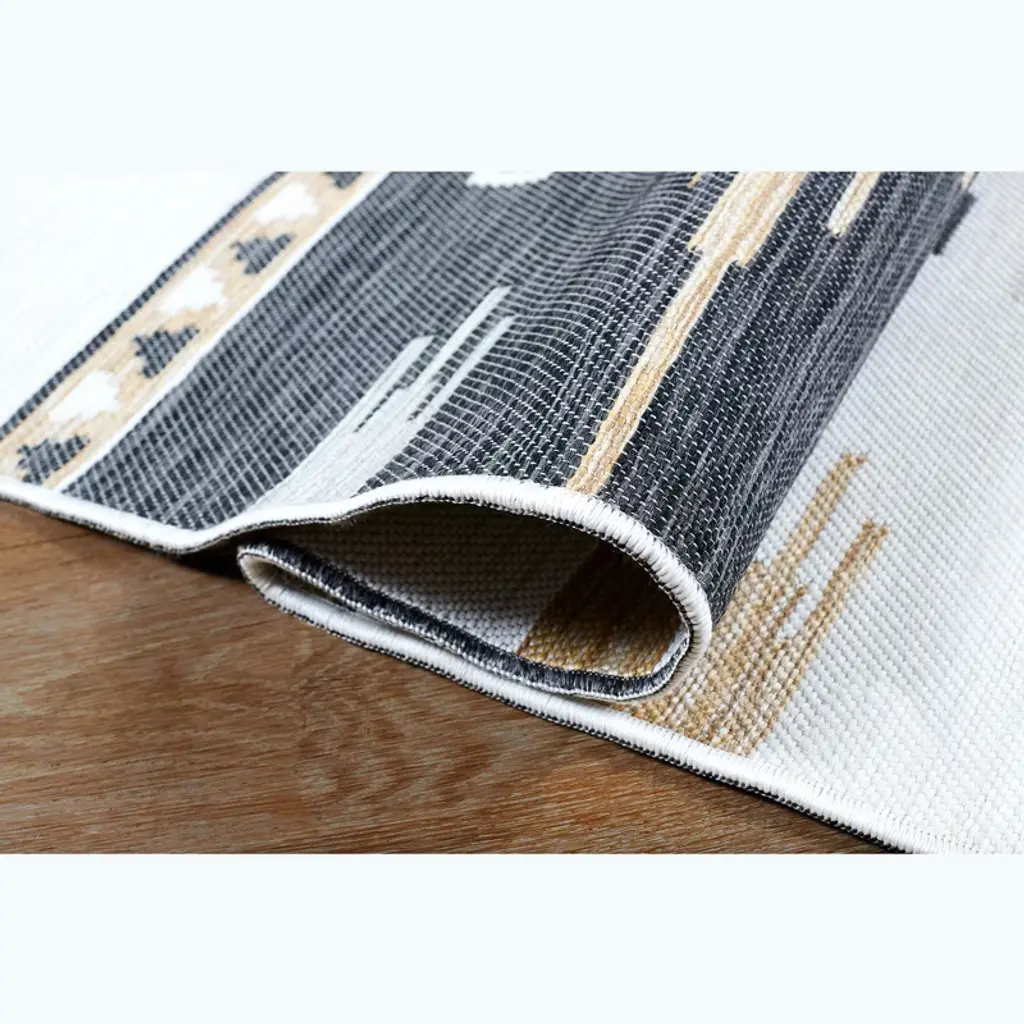 Refresh your home decor with this neutral, machine-made indoor and outdoor area rug. Its versatile beige and black tones and barely there, flatweave pile height of 1/8 inch make it perfect for any space in your home. Plus, it's made of a durable and comfortable 100% Polypropylene and is reversible. Rotate the rug periodically for even wear and vacuum at the lowest setting or hose down with water regularly and hang to dry for easy cleaning. The Plaza collection showcases styles for any high-traffic area of your home, from patio to pool or entryway to office.