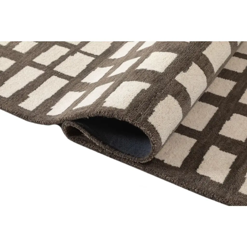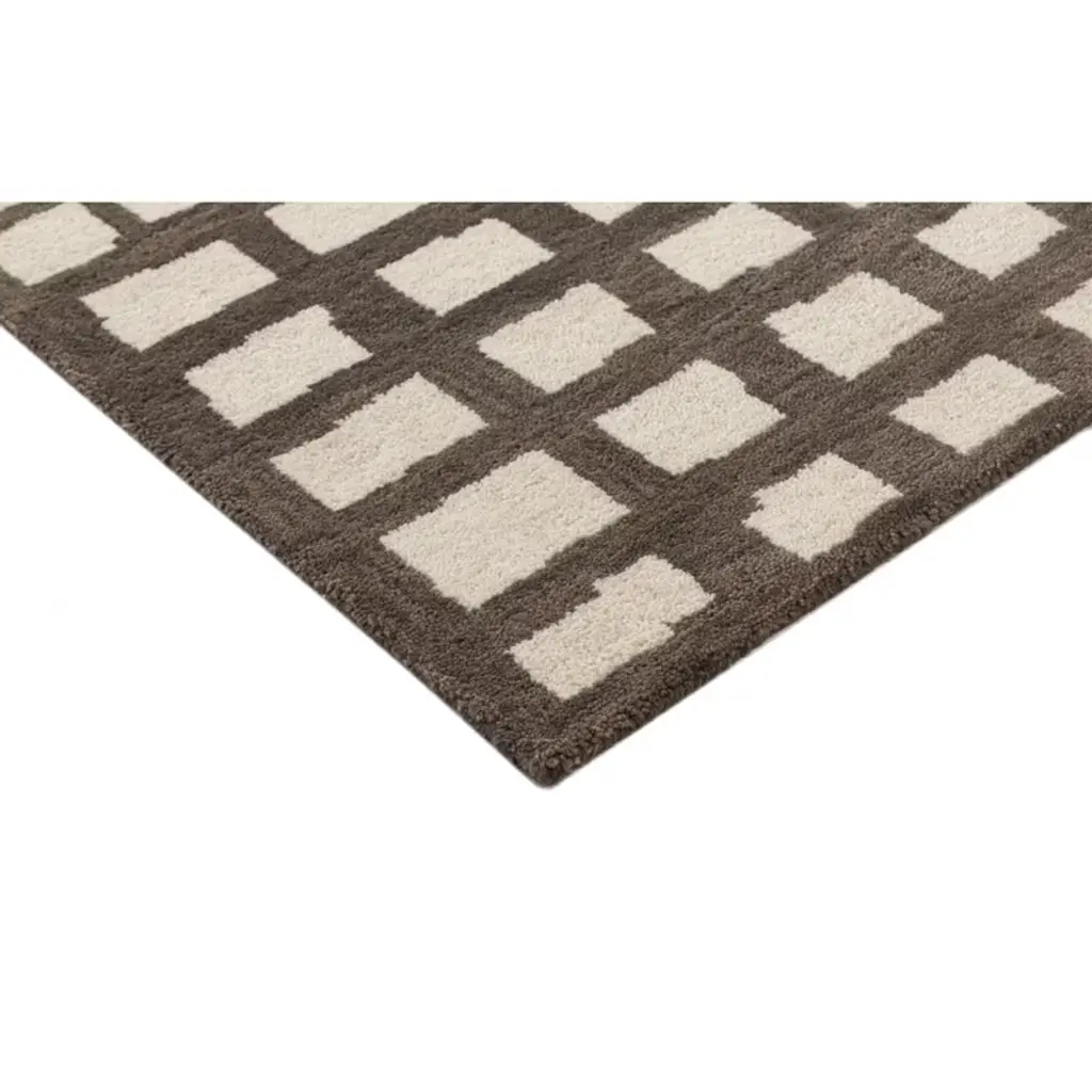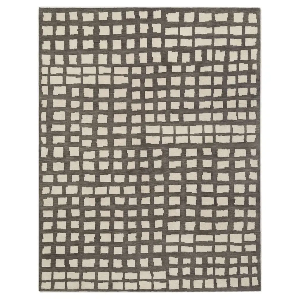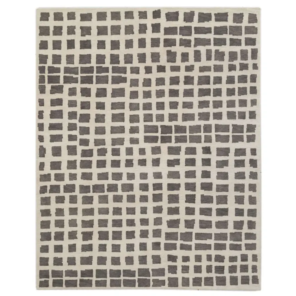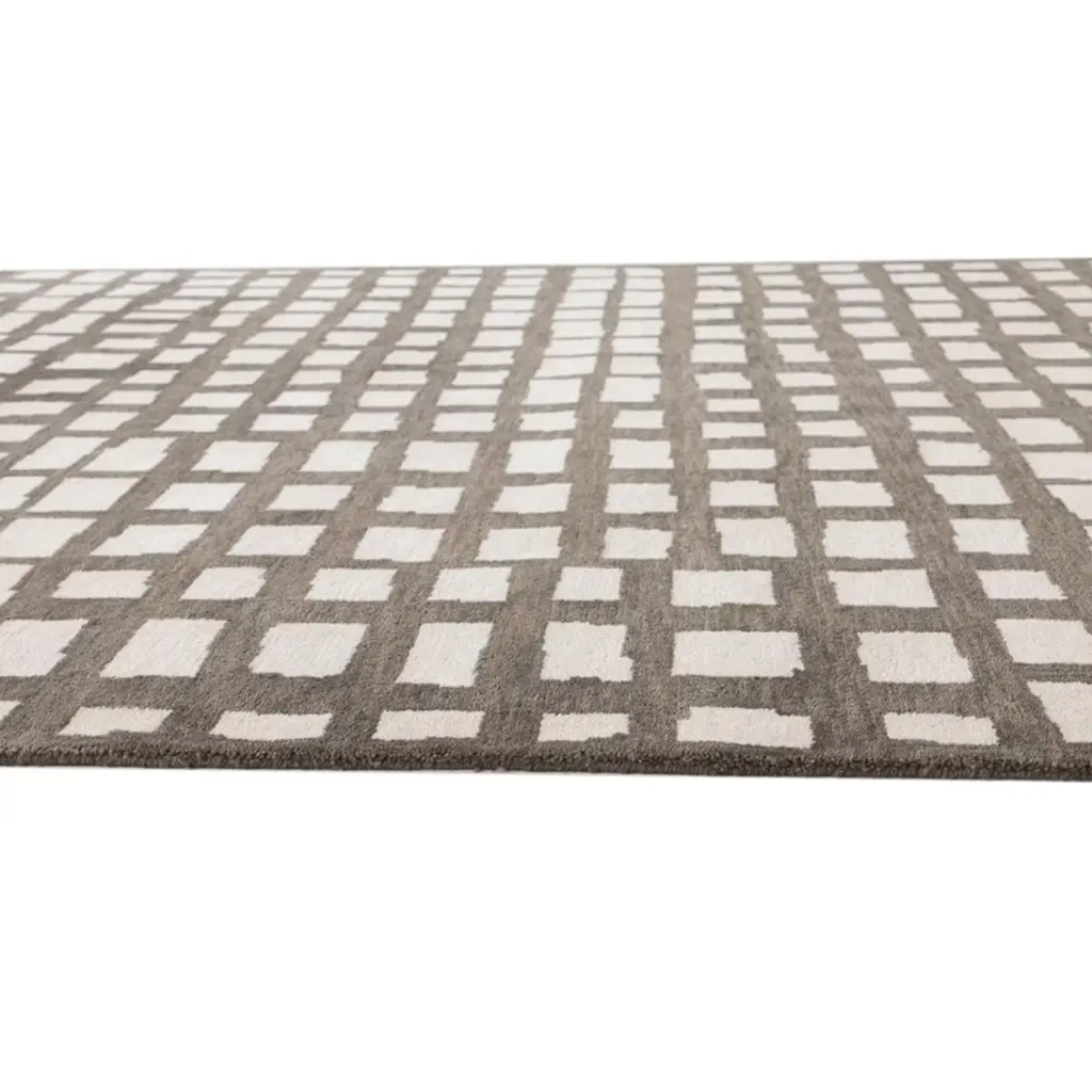 This hand-tufted wool rug features an abstract grid pattern with a contemporary edge, making it a striking addition to modern interiors. The cut pile construction enhances the design's depth and creates a smooth, plush texture underfoot. A neutral beige base is accented with irregular charcoal blocks, giving the rug a hand-drawn, artistic feel. Crafted from 100% wool, this rug offers a soft yet durable surface, making it ideal for living rooms, bedrooms, and stylish office spaces.