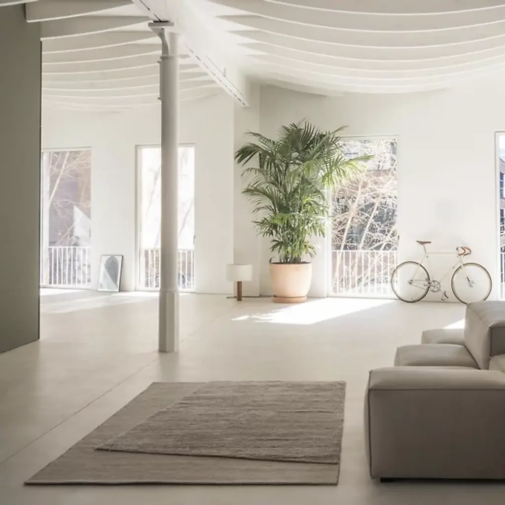 The Oblique Area Rug from Nanimarquina reimagines the traditional overlaying rug with a minimal design exploring monochromatic geometry. Designer Matthew Hilton’s background in architecture, design, and painting factors clearly in this rug’s precise yet intriguing design. It sees an angular shape with raised fibers jumping out visually against a low pile of fibers. The play of high and low fibers lets ambient light create a two-tone look for this single-color design. Artisans hand-knot the rug using hand-spun Afgan wool. This piece offers a plush and clean sensation to one’s feet in its dynamic set of shapes.
