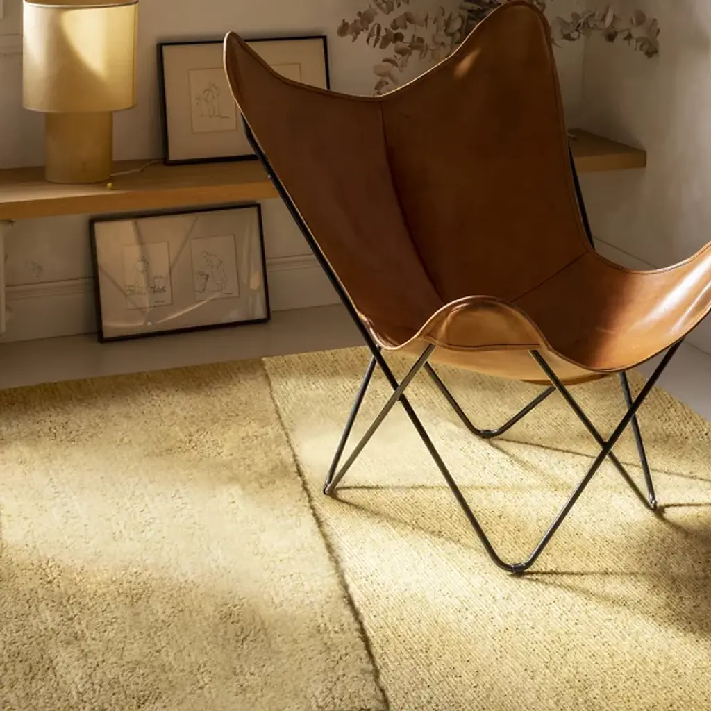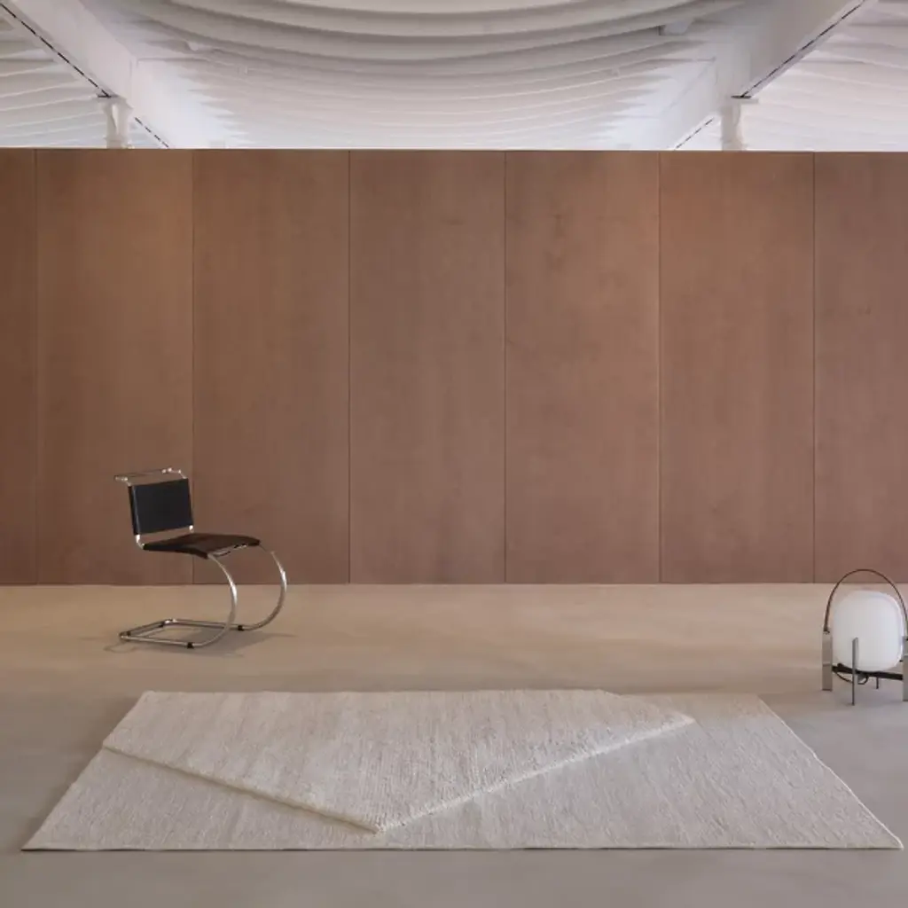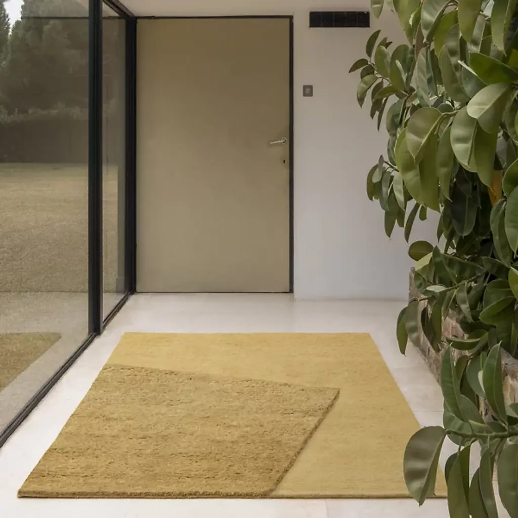 The Oblique Area Rug from Nanimarquina reimagines the traditional overlaying rug with a minimal design exploring monochromatic geometry. Designer Matthew Hilton’s background in architecture, design, and painting factors clearly in this rug’s precise yet intriguing design. It sees an angular shape with raised fibers jumping out visually against a low pile of fibers. The play of high and low fibers lets ambient light create a two-tone look for this single-color design. Artisans hand-knot the rug using hand-spun Afgan wool. This piece offers a plush and clean sensation to one’s feet in its dynamic set of shapes.