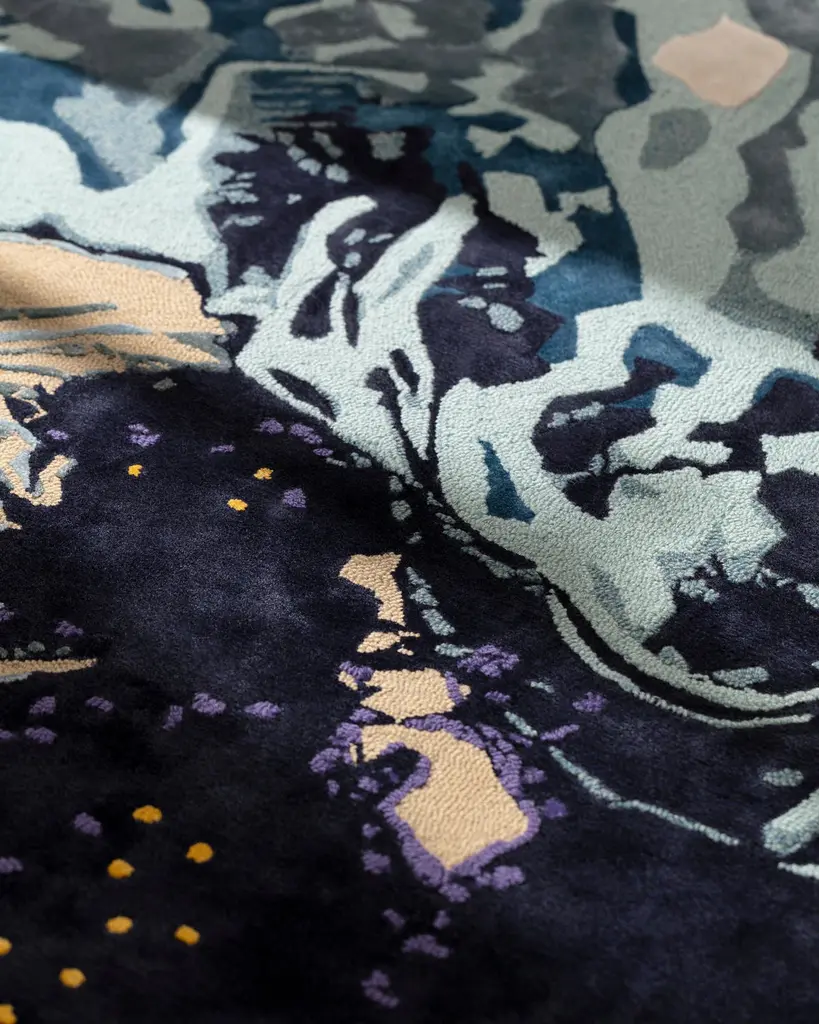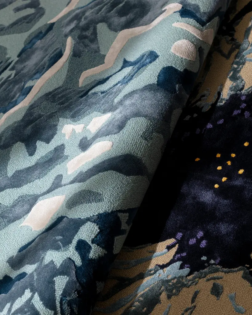Ocean Rug by Volver StudiosDimensions: W 250 x L 350 cm.Materials: Wool and bamboo.Available in seven size options: 90 x 240 cm, 140 x 200 cm, 170 x 240 cm, 200 x 300 cm, 250 x 350 cm, 300 x 400 cm, and 350 x 450 cm. Also available in custom measurements. Prices may vary. Please contact us.Volver is a Norwegian design studio that offers curated collections of premium rugs for private and public spaces. Volver aims to enrich the notion of Scandinavian design with a vibrant diversity of artistic and individual expressions.Originally from Tallinn, Estonia, born and raised in an artist home, Ksenia Stanishevski studied industrial design at the School of Architecture and Design in Oslo, Norway and The University of Newcastle, Australia.By starting Volver in 2018, Ksenia’s design objective has been to bring individual artistry and creativity into our environments, be it home or work. “Inspiring expression” in each of her clients and each project has been a fundamental element in her work. Pushing the limits between art, design, and handcraft, Ksenia constantly experiments and dares to confront stereotypes of what rug is, what art is, and what textile is, and is working with scales from micro to macro, pushing the possibilities of available technology and traditional handcraft.