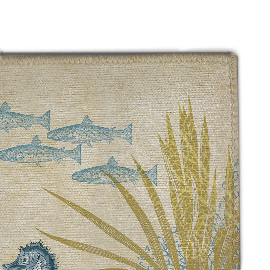 This coastal combination done in soft hues of coral and blue will create a serene atmosphere to any patio, deck or outdoor living space. Set against a soft textured background, our "Oceana" outdoor area rug features finely detailed sea crustaceans and plants.