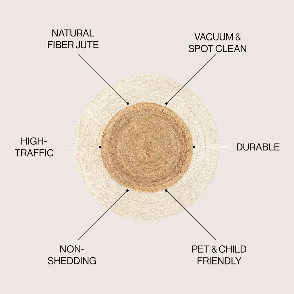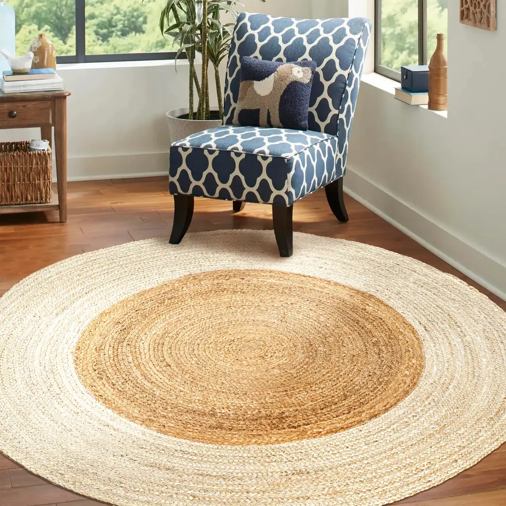 Flat-weave jute is the perfect casual rug for a living room, home office or bedroom. Our two-tone border rug is handcrafted from natural fibers for cozy texture in any space. Durable and easy to care for, our round jute rug adds low-key style to traditional, modern and coastal interiors.