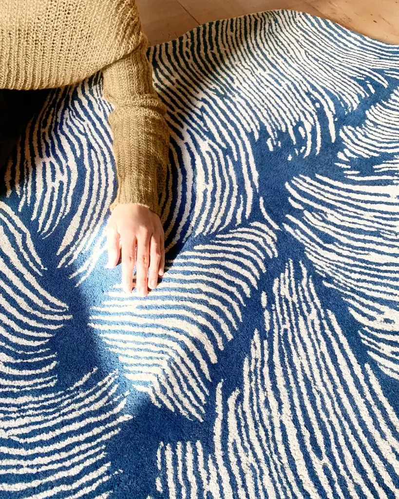 Oceano Blue is a round wool and tencel carpet designed by Studio Zero.Design ID: BLUEOrigin: IndiaPile composition: WoolThickness: ≈ 2 cmTechnique: Hand-tuftedCustom sizes / colors on requestThe inextricable interweaving of the lines recounts the infinite motion of the waves that chase each other, and blend together, in hypnotic vortexes and turbulent billows, the magnetically attracted gaze by the strength of the abyss and its immensity. This collection comes alive thanks to the fascination of the primordial oceans, the origin of time and every movement, the overwhelming strength bustling with life from which every land emerges, swaying and colliding in an eternal drift. The collection is composed of hand-tufted rugs made of 100% wool, and is available in three colors and two formats, round and rectangular, with different dimensions.