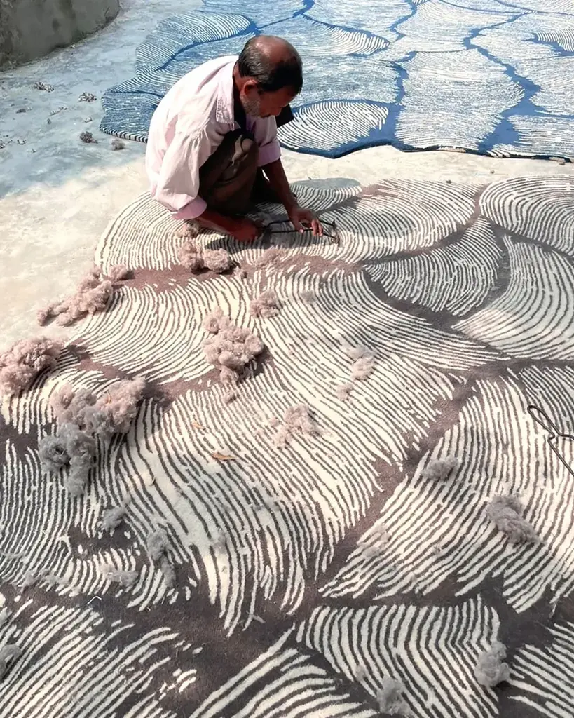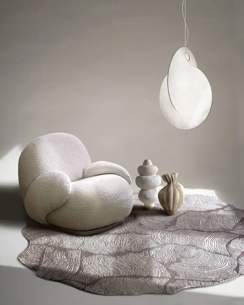 Oceano Round Taupe is a round wool rug designed by Studio Zero.The intricate interweaving of lines evokes the endless motion of waves as they chase and merge into hypnotic whirlpools and turbulent currents, the gaze magnetically drawn to the power of the abyss and the vastness it holds. This rug collection is inspired by the primordial ocean — the origin of time and all movement, an overwhelming force teeming with life, from which all land emerges, drifting and colliding in eternal motion.The collection features 100% hand-tufted wool rugs and is available in three color variations and two shapes — rectangular and round — in a range of sizes.The inextricable interweaving of the lines recounts the infinite motion of the waves that chase each other, and blend together, in hypnotic vortexes and turbulent billows, the magnetically attracted gaze by the strength of the abyss and its immensity. This collection comes alive thanks to the fascination of the primordial oceans, the origin of time and every movement, the overwhelming strength bustling with life from which every land emerges, swaying and colliding in an eternal drift. The collection is composed of hand-tufted rugs made of 100% wool, and is available in three colors and two formats, round and rectangular, with different dimensions.