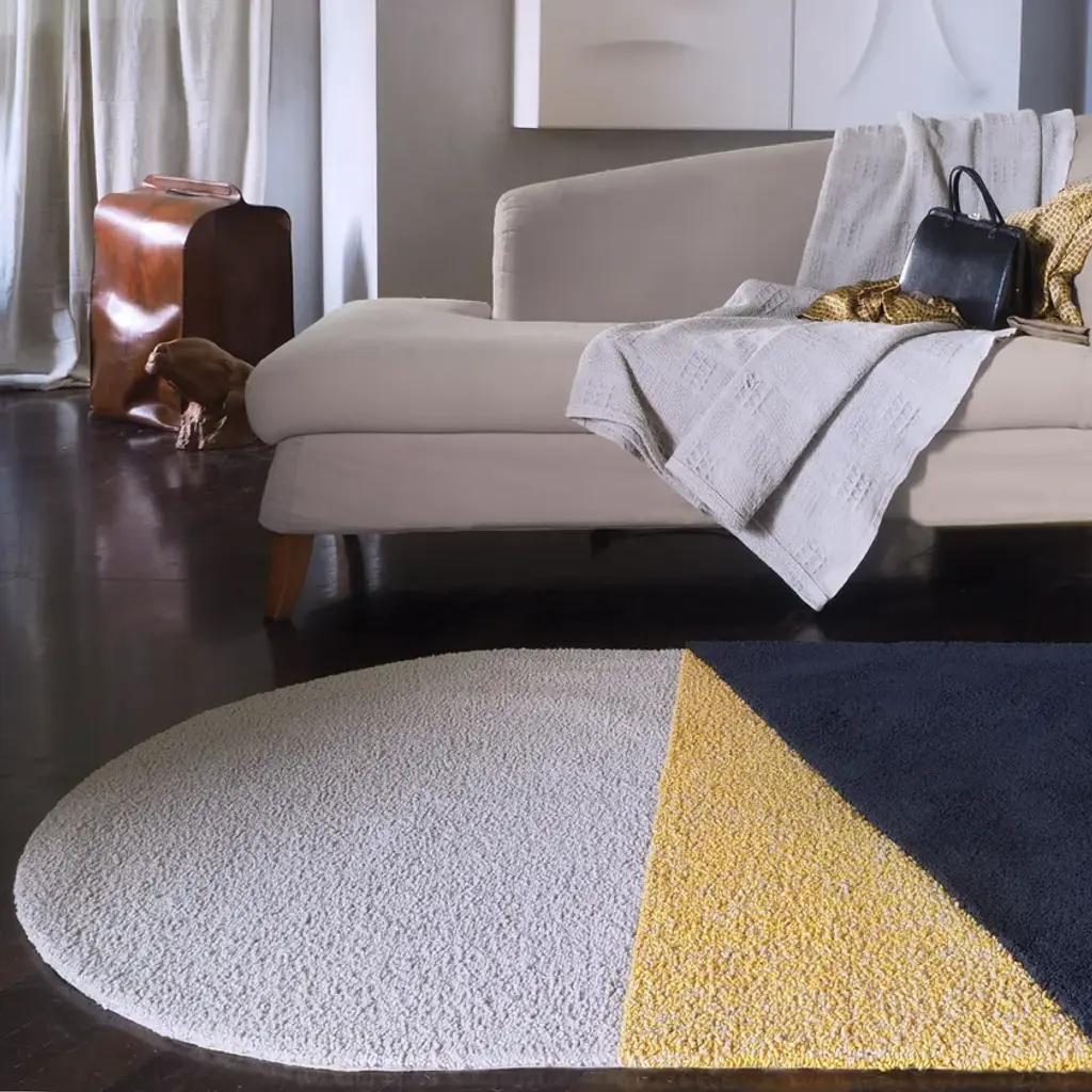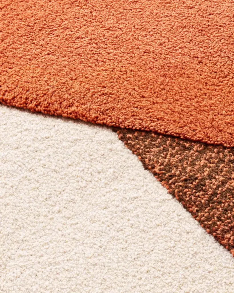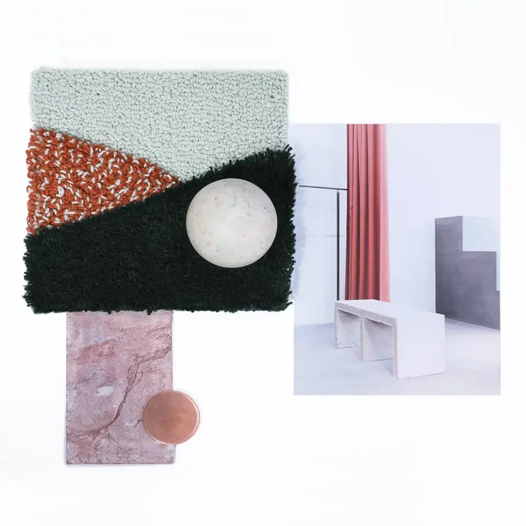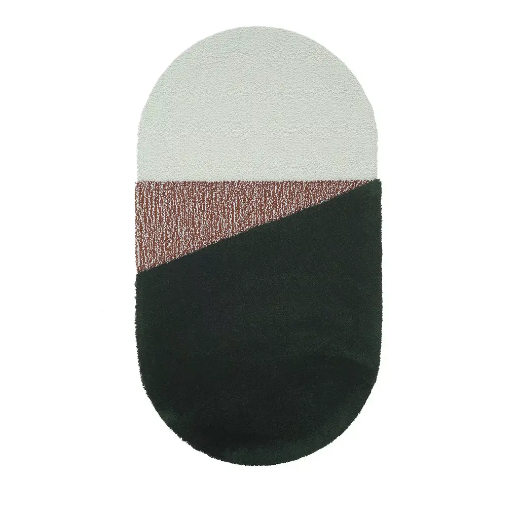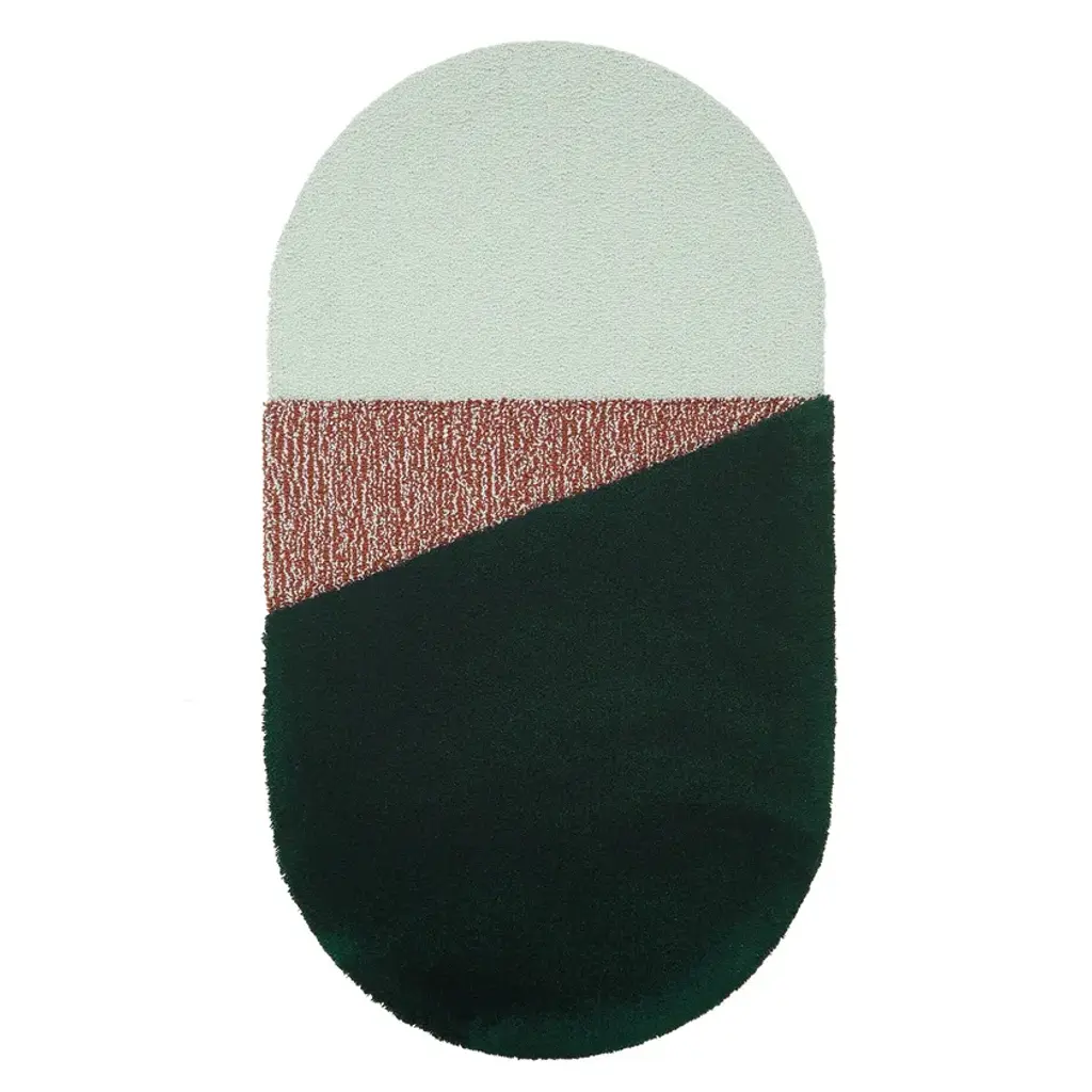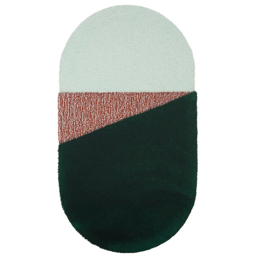 Oci Right is a wool rug.Materials: 100% New Zealand WoolFinishes: Yellow - Deep Grey, Green - Brick, Coral - BrownA collection of rugs shaped like the windows of the most iconic buildings of Venezia. The monochromes are like stylised landscape made with tufting technique and different yarn lengths to offer a very pleasant range of tactile sensations.