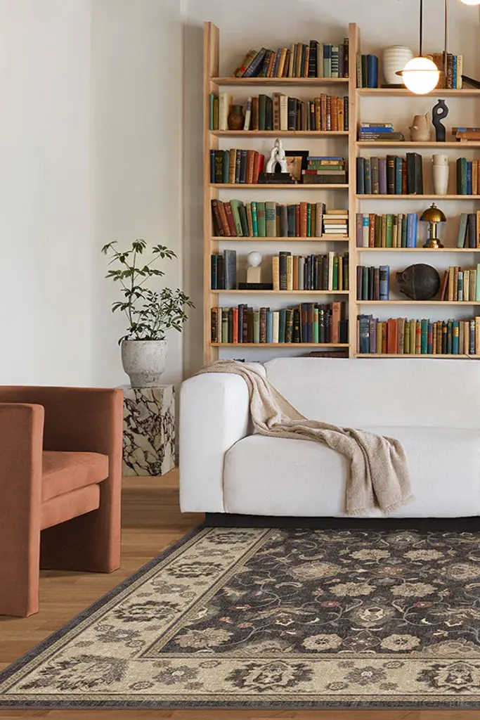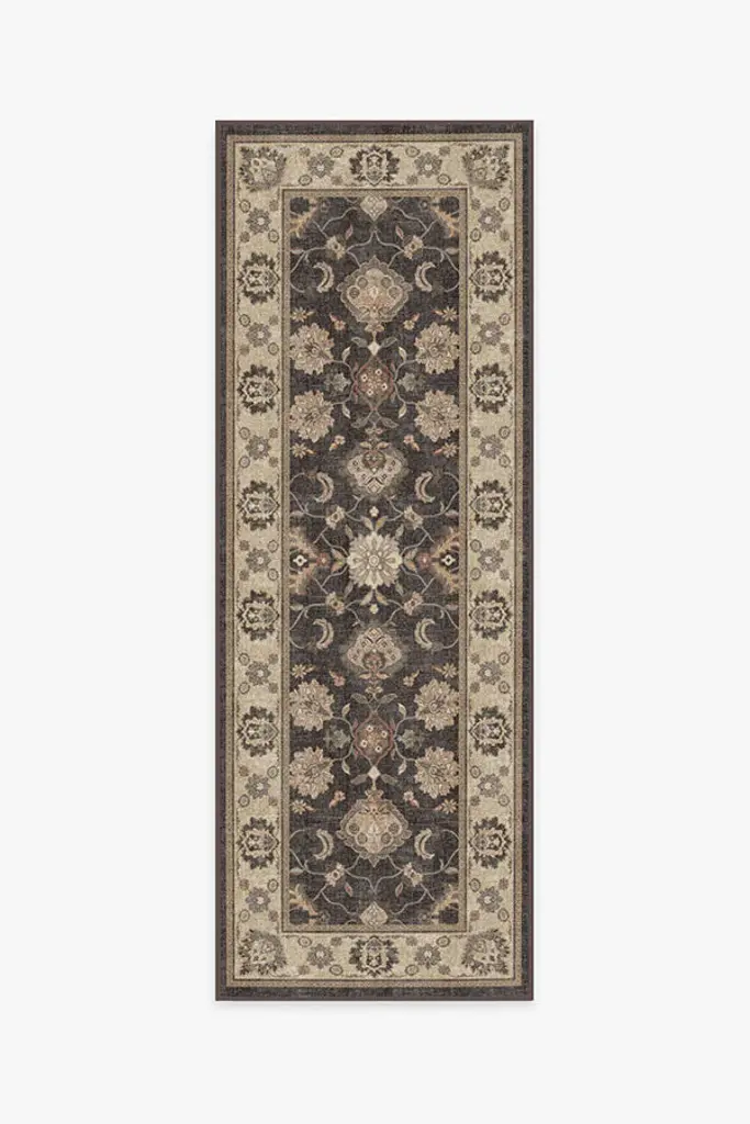 Feminine florals fuse with rustic browns in our Odette Dark Wood Rug. The antique-inspired design takes inspiration from European patterns in rustic shades of brown and black contrasted with regal pops of gold, coral, beige, and taupe.