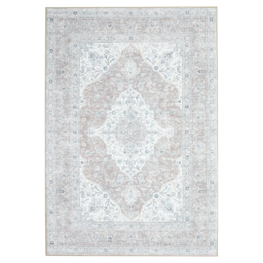With an ultra-soft, cut pile of Polypropylene, this rug feels as good as it looks. This vintage rug boasts a captivating center floral medallion. The unique pattern features carefree vines that hold smaller flowers across the rug, and is framed by diagonal corners and a band with conjoined flowers at both ends. This rugs soft synthetic fibers, ensures lasting beauty and durability, bringing a feel of tranquility and elegance to any room.