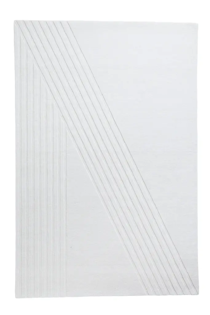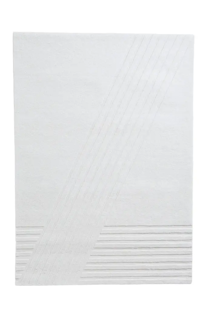 The hand-tufted wool rug, Kyoto, takes its inspiration from the distinctive pattern found in traditional raked Japanese rock gardens. With its minimalistic linear cut piles, the design provides a quiet sense of movement as the engraved lines travel in straight and diagonal motions. Kyoto provides a complementing base for a furniture setting while also bringing a sense of the textured landscape inside.