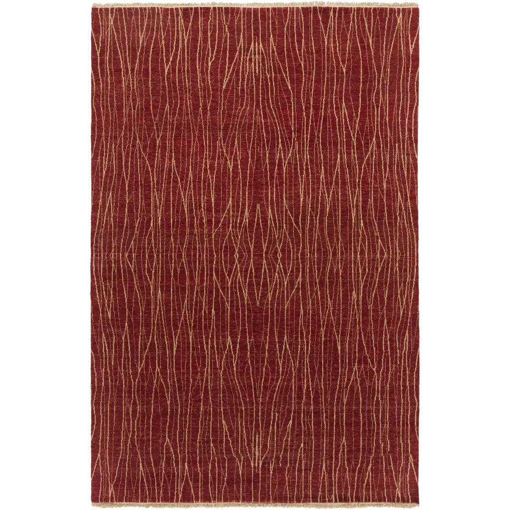 Collection: Olavi Colors: Red, Beige Construction: Hand Knotted Pile: Medium Pile Pile Height: 0.4" Made In: India Price Range: $$$$$ (Premium)