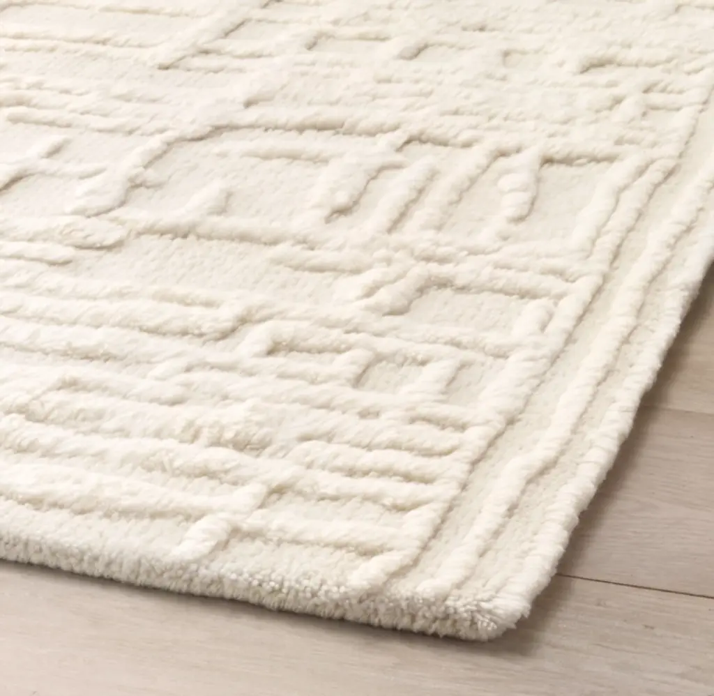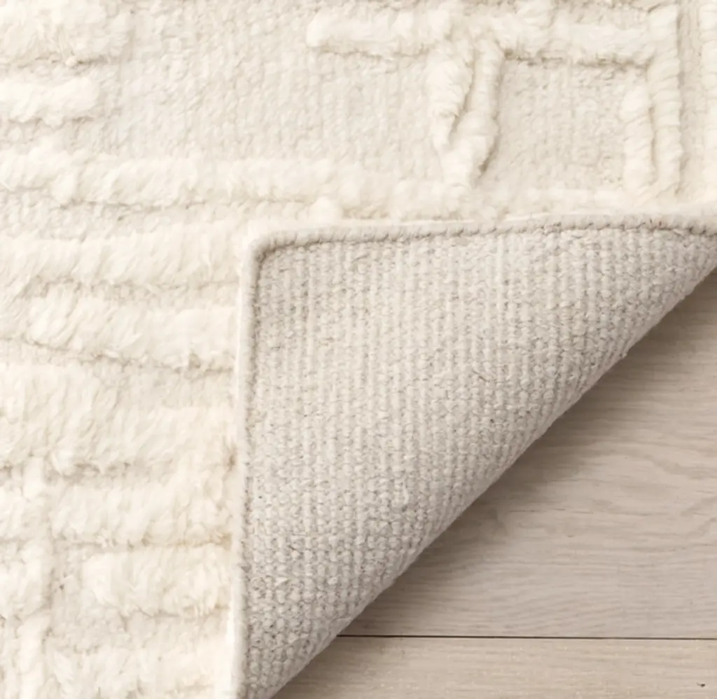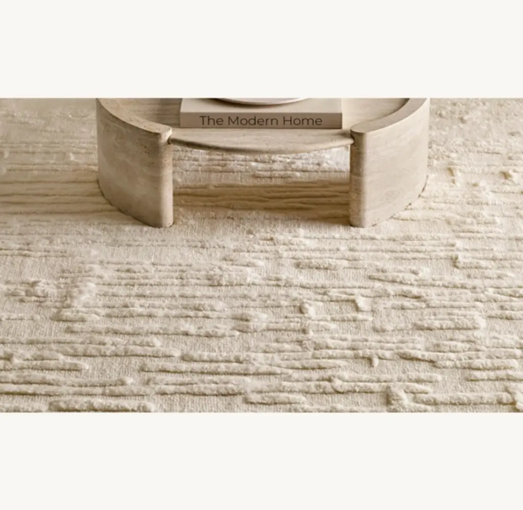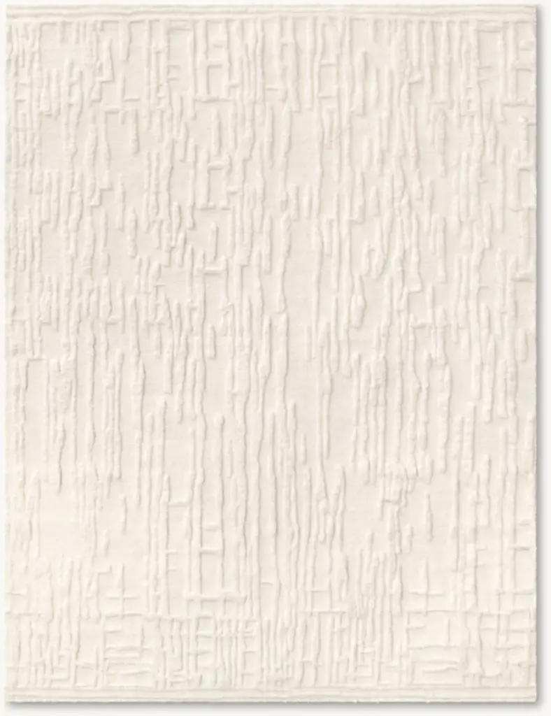 Minimalist art inspired Olena's dynamic composition, artfully sculpted into monochrome pile with high-low dimension. Hand knotted from wool, undyed yarns lend organic richness to the abstract pattern.