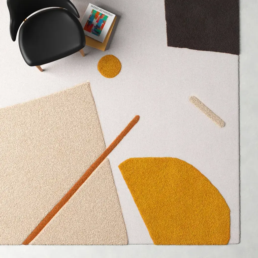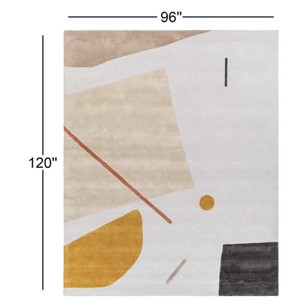 Inspired by mid-century abstract paintings, this area rug features raised geometric designs with an understated palette and an emphasis on negative space. It’s hand-tufted in India from naturally resilient wool, in a medium pile height that combines softness with durability.