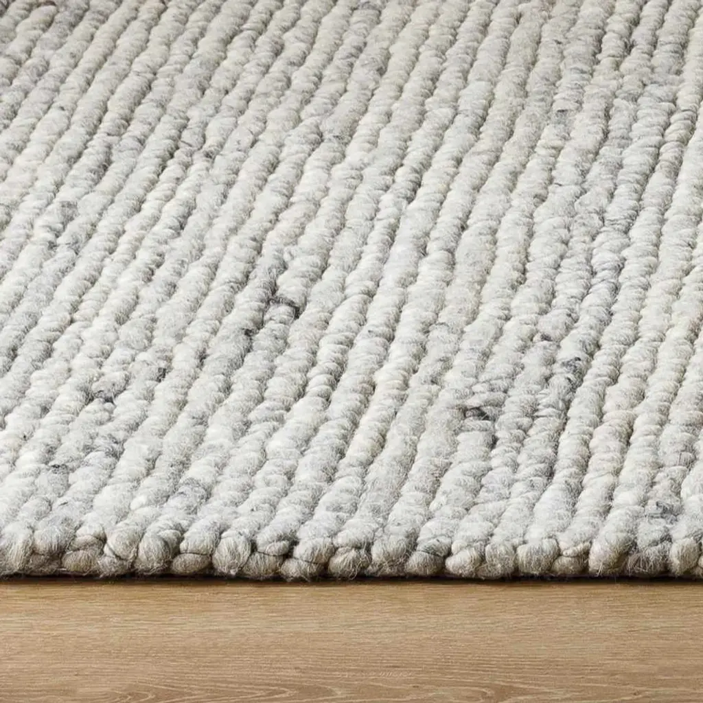 Collection: Olisa Colors: Light Gray Construction: Hand Woven Material: 75% Wool,25% Jute Pile: Medium Pile Pile Height: 0.5" Styles: Transitional,Traditional Made In: India Thickness: 0.7" Price Range: $$$$$ (Affordable)