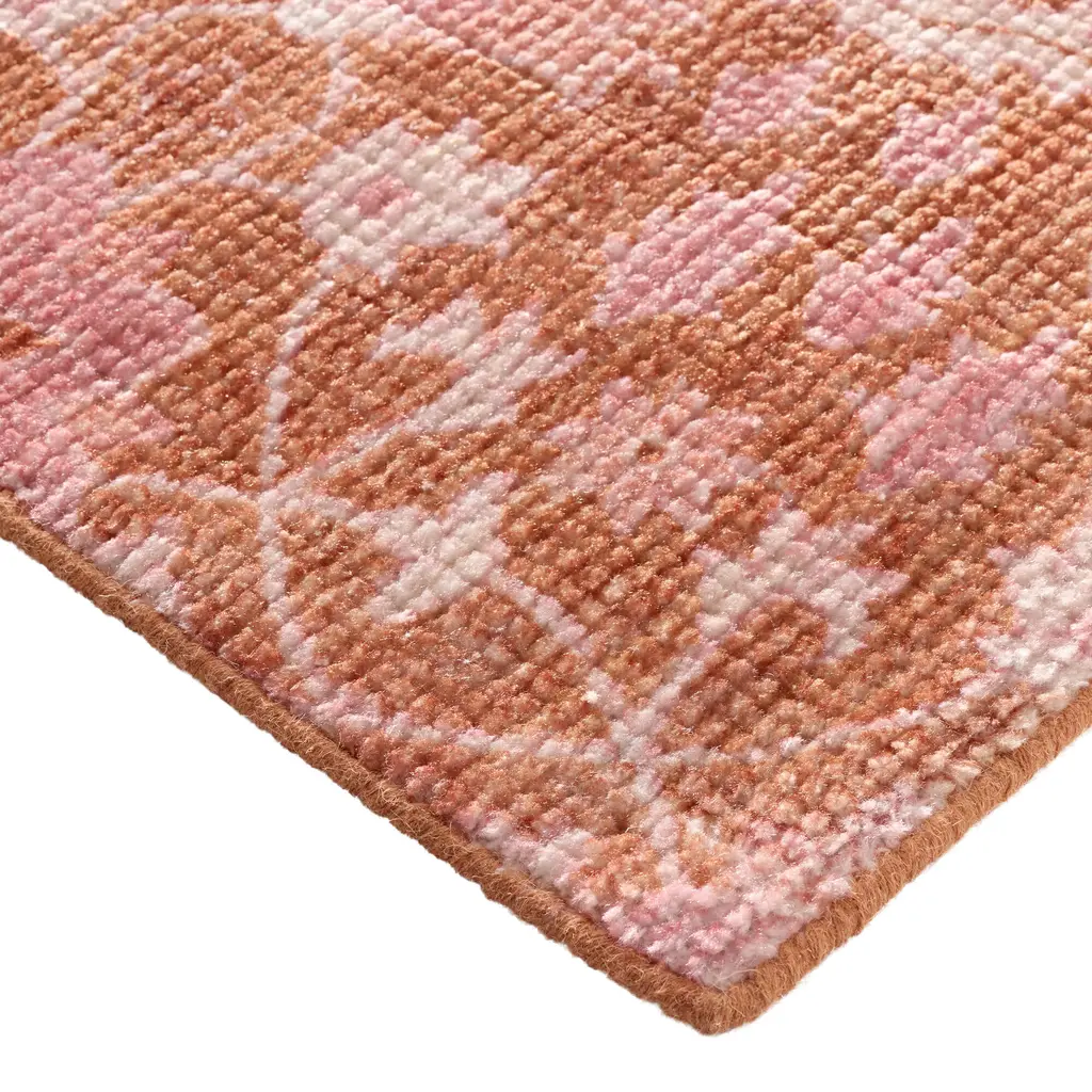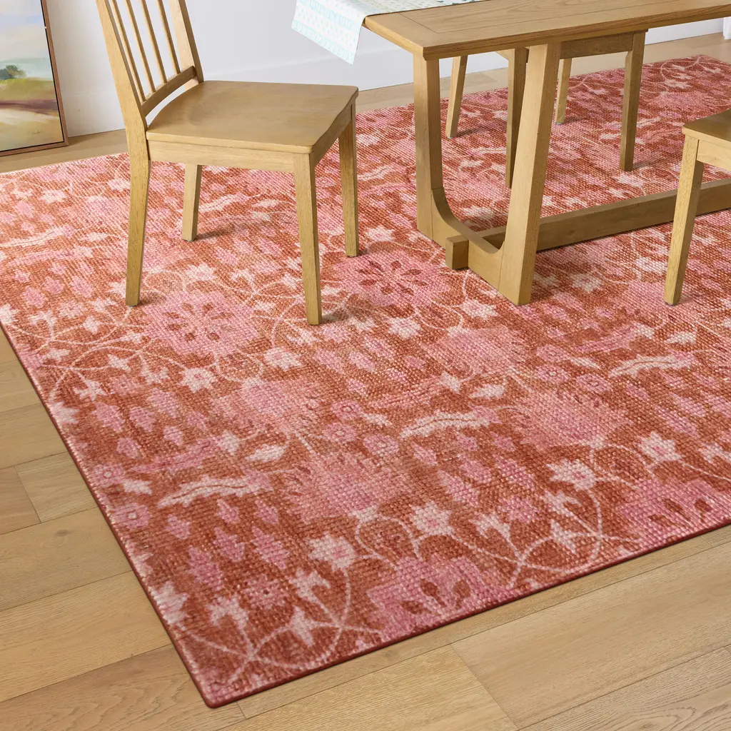 Handwoven of recycled materials with a vintage-style floral print, our Olivia 6x9 rug refreshes any setting with a fashionable palette of warm coral and fuchsia. State-of-the-art technology allows us to recreate the plush durability and luxurious texture of a premium hand-knotted wool area rug at an incredible value. Handmade with polyester sourced from discarded plastic bottles, this on-trend rug has a remarkably sumptuous underfoot feel.