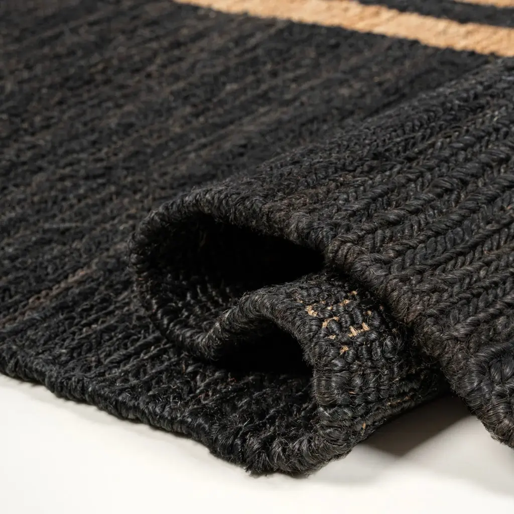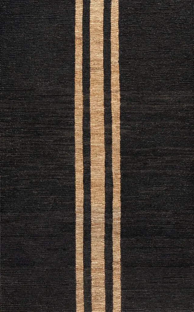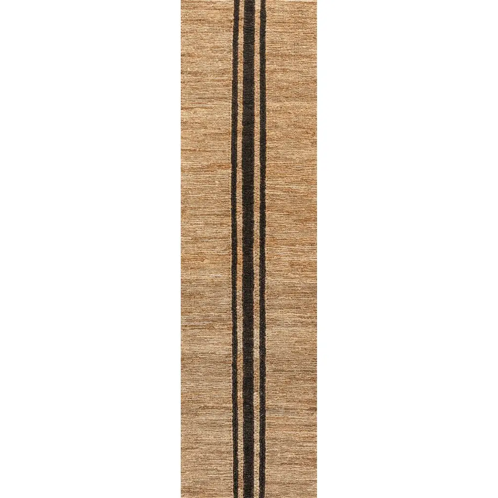 Whether your style is modern farmhouse or French Country, a wide ticking stripe is the perfect accent. Our jute rug features a cross-weave pattern with a classic ticking stripe down the center, in real jute fibers that are soft and flexible. This bold two-tone rug is a versatile addition to a living room, office, bedroom or foyer.