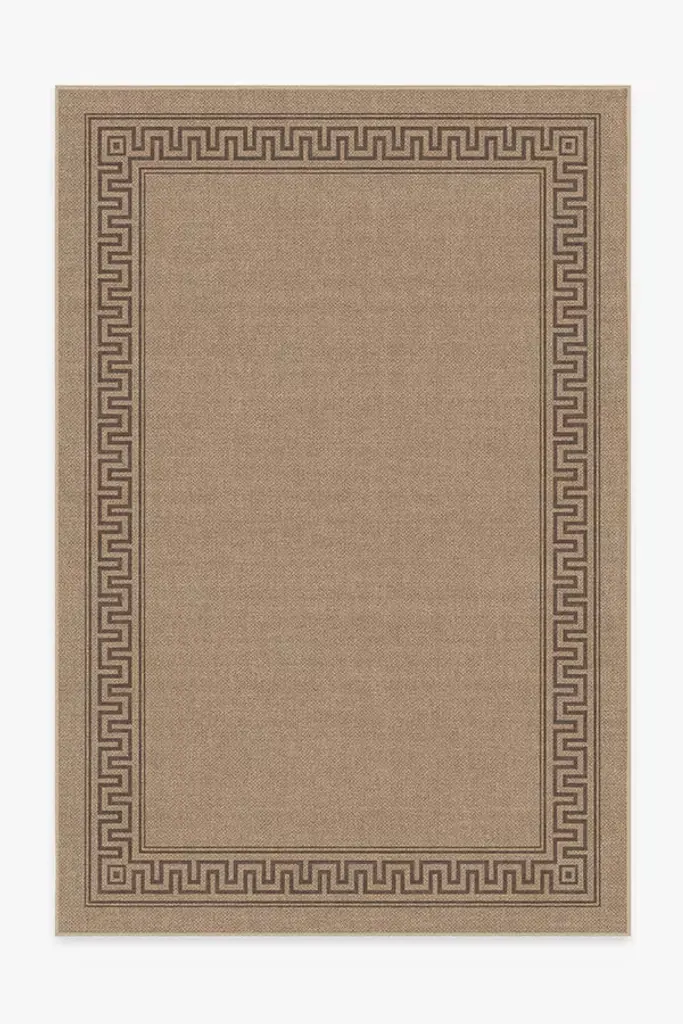 Standard PadGive your home a Greek touch with our Olympia Border Latte Brown Re-Jute Rug. The linework border in ash brown is set against a warm jute-colored background and is inspired by the archaeological site, Olympia. The woven jute-like material is made from recycled and virgin polyester, and polyurethane that won't shed or fray. Water-resistant, stain-resistant, and machine-washable.