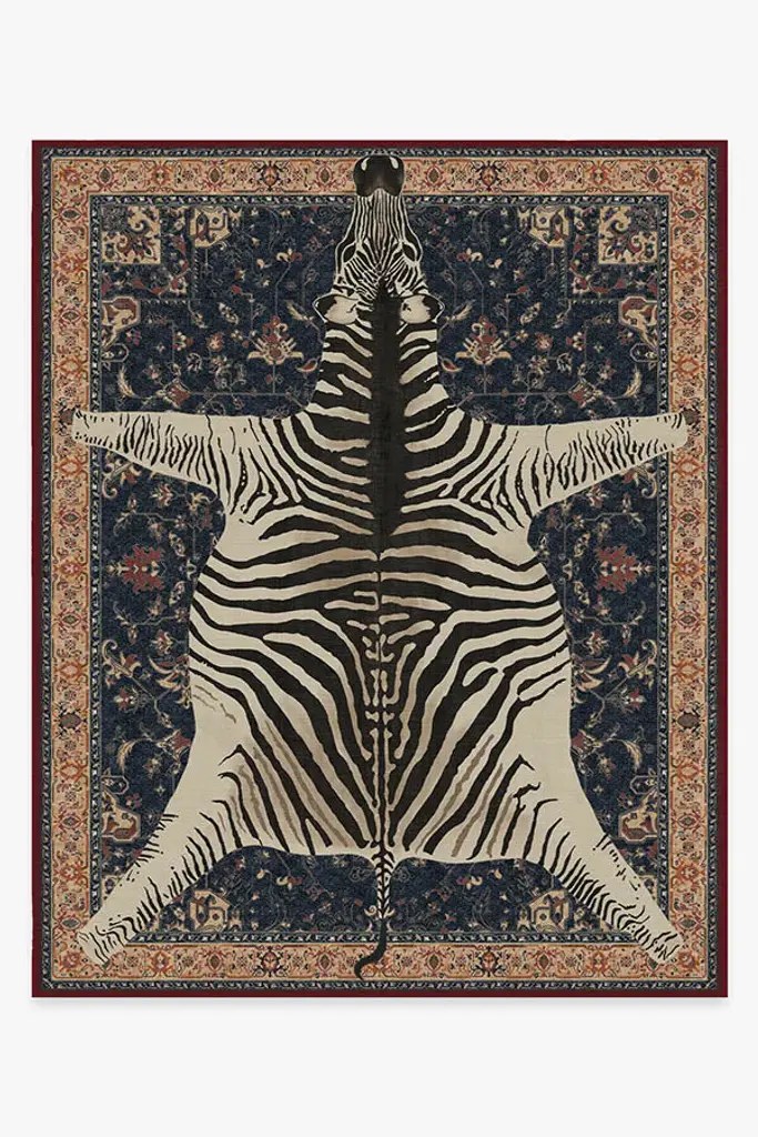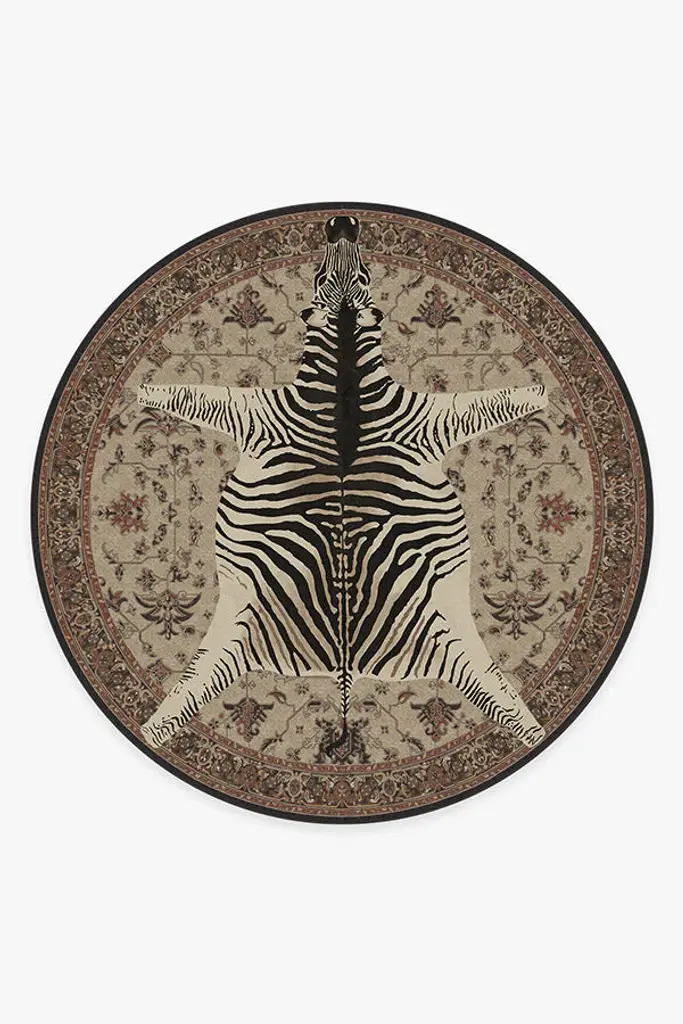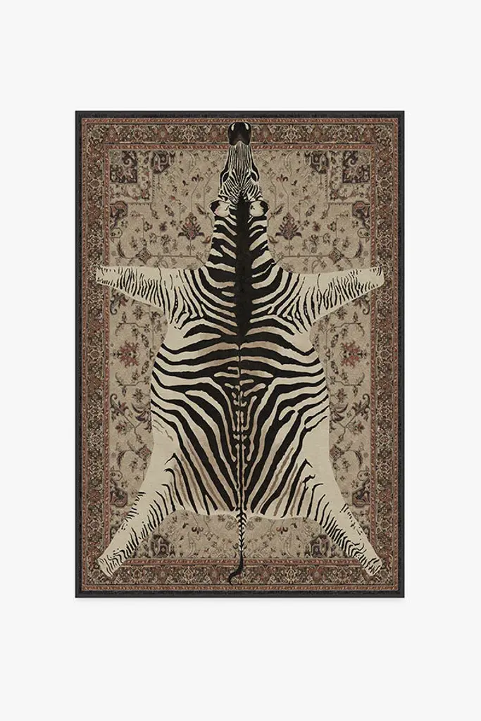 Dare to be different. Our Iris Apfel On Safari Hazel Rug features an intricate Persian-inspired design layered with large animal imagery for a sense of sophisticated eclecticism. The warm tonal tans of this piece call back to the zebra's homeland of the African grasslands and savanna woodlands. Water-resistant, stain-resistant, and machine-washable.