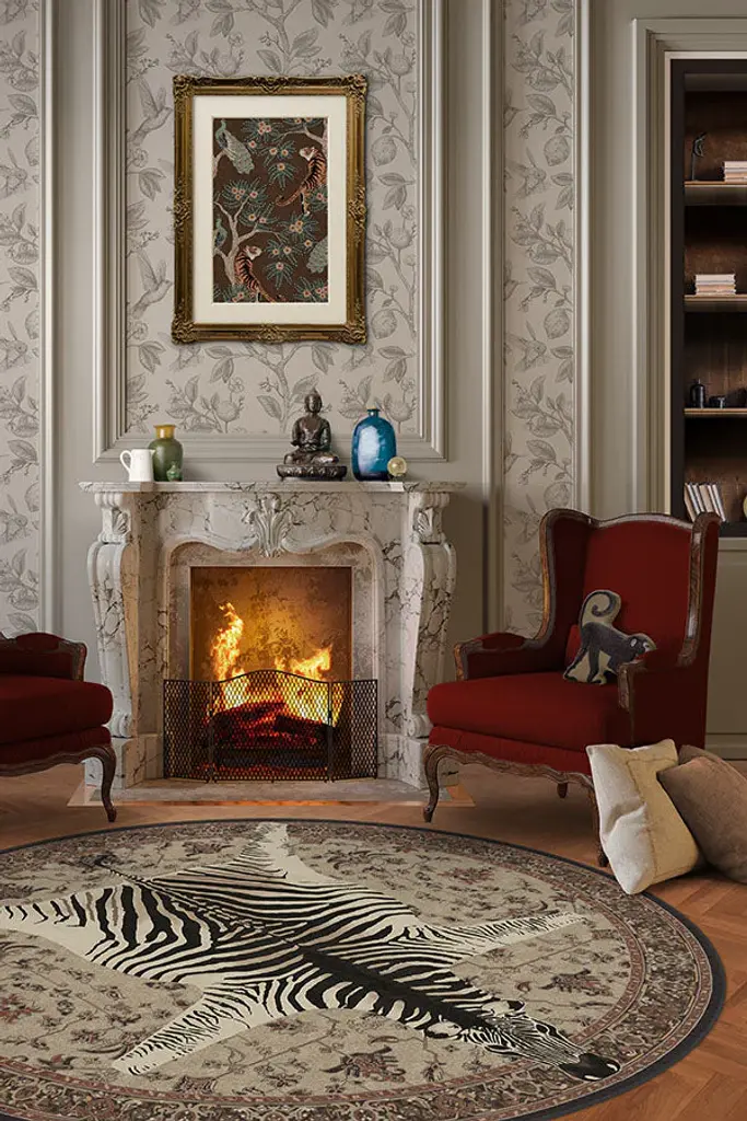 Dare to be different. Our Iris Apfel On Safari Hazel Rug features an intricate Persian-inspired design layered with large animal imagery for a sense of sophisticated eclecticism. The warm tonal tans of this piece call back to the zebra's homeland of the African grasslands and savanna woodlands. Water-resistant, stain-resistant, and machine-washable.