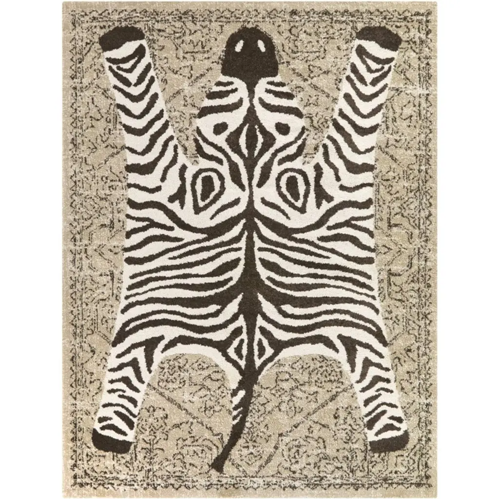 Dare to be different. Our Iris Apfel On Safari Hazel Rug features an intricate Persian-inspired design layered with large animal imagery for a sense of sophisticated eclecticism. The warm tonal tans of this piece call back to the zebra's homeland of the African grasslands and savanna woodlands. Water-resistant, stain-resistant, and machine-washable.