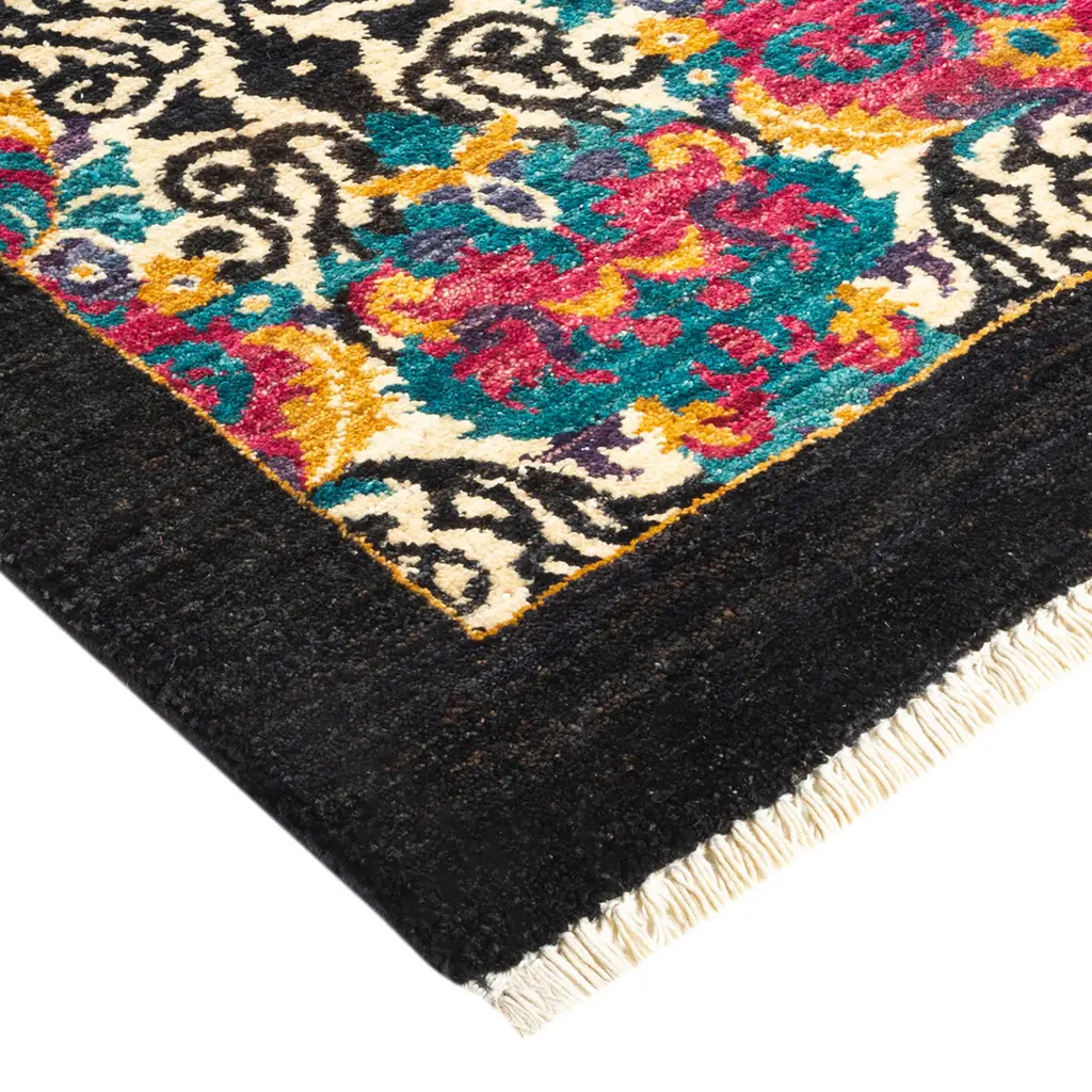 One-of-a-kind Suzani Hand-knotted Black Rug, 11'10" X 15'3"
