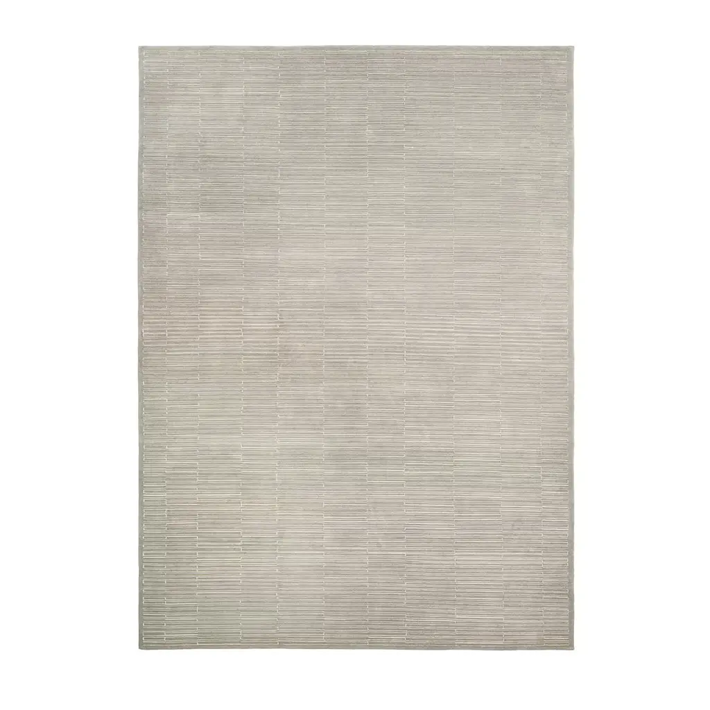 Exquisitely decorated with a bamboo silk pattern of bold geometric value, this carpet transmits a charming Oriental inspiration that will add a singular accent in both traditional and contemporary interiors. Hand-knotted from wool and bamboo silk, this piece boasts a purple-gray color with the motif being rendered in a lighter, brownish hue.