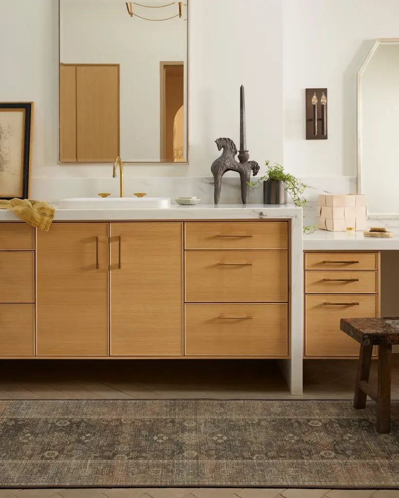 Simple to style. Easy to enjoy. Inspired by vintage rugs, our Ophelia Bronze Multicolor Rug is a fresh take on antique style with a rich color palette and detailed depth. Featuring a smooth blend of bronze background hues, occasionally you'll discover large pops of grey-blue, green, and coral in this lovely, bordered design. Water-resistant, stain-resistant, and machine-washable. Rug colors may vary slightly according to your device and the lighting in your space.