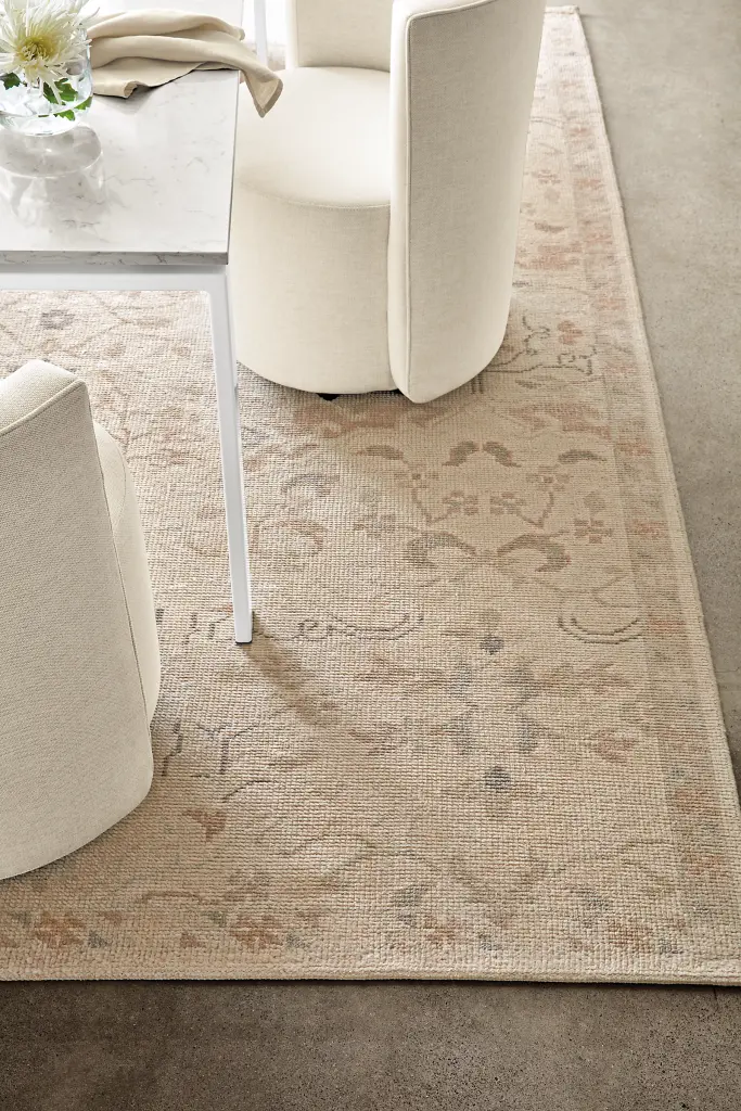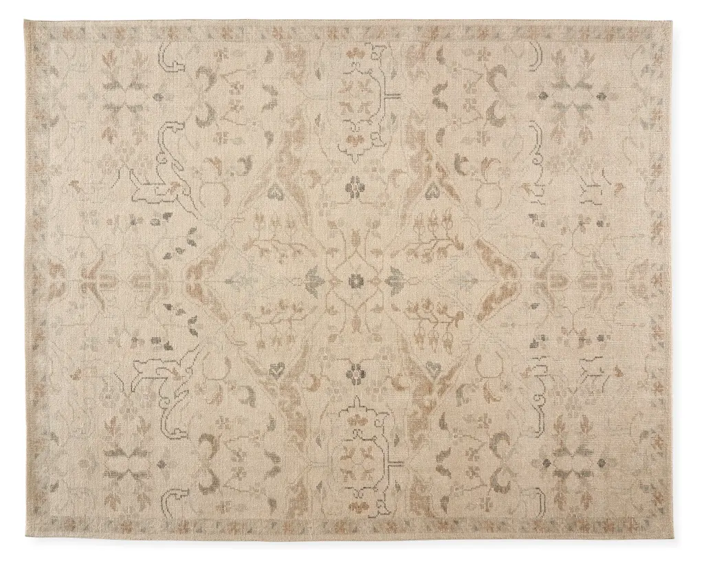 Our Ophelia rug boasts a dramatic yet delicate pattern with a variegated color. By hand-knotting each 100% wool yarn, the artisans in India who weave this rug ensure its long-lasting beauty and strength.