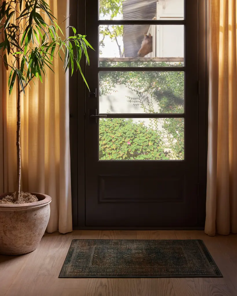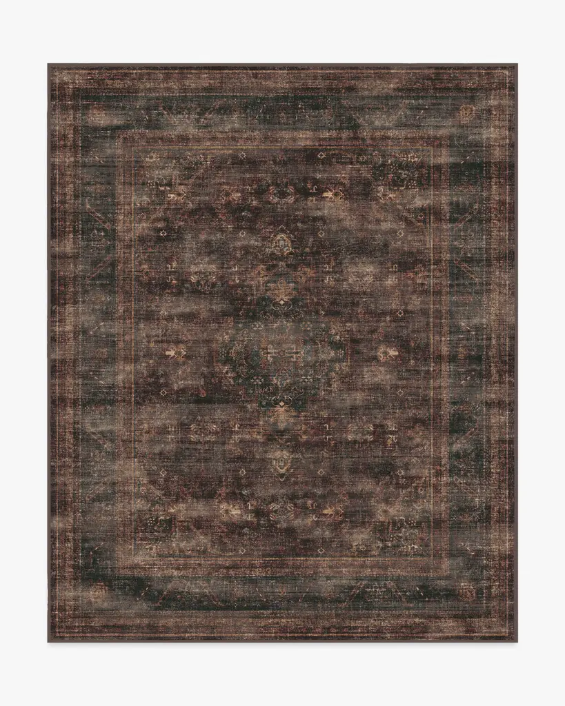 Simple to style. Easy to enjoy. Inspired by vintage rugs, our Ophelia Navy & Redwood Rug is a fresh take on antique style with a rich color palette and detailed depth.. Featuring a smooth blend of midnight blue and navy background colors, occasionally you'll discover delicate pops of light blues and warm beige. Large drops of terracotta add a finishing touch to this lovely, bordered design. Water-resistant, stain-resistant, and machine-washable. Rug colors may vary slightly according to your device and the lighting in your space.