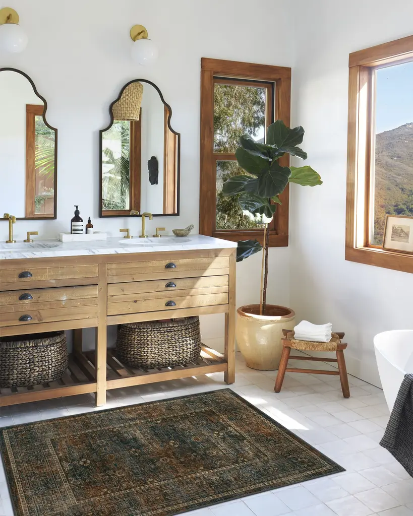 Simple to style. Easy to enjoy. Inspired by vintage rugs, our Ophelia Navy & Redwood Rug is a fresh take on antique style with a rich color palette and detailed depth.. Featuring a smooth blend of midnight blue and navy background colors, occasionally you'll discover delicate pops of light blues and warm beige. Large drops of terracotta add a finishing touch to this lovely, bordered design. Water-resistant, stain-resistant, and machine-washable. Rug colors may vary slightly according to your device and the lighting in your space.